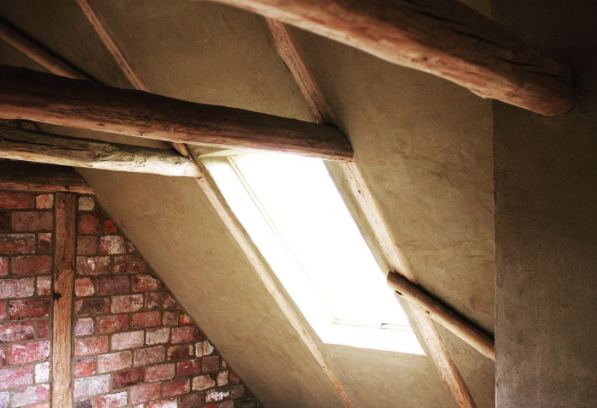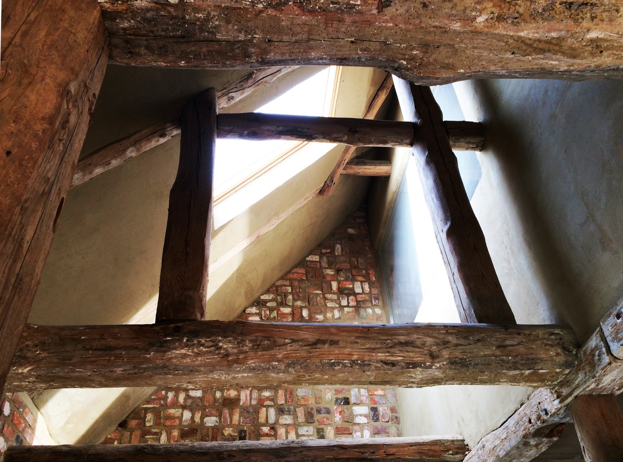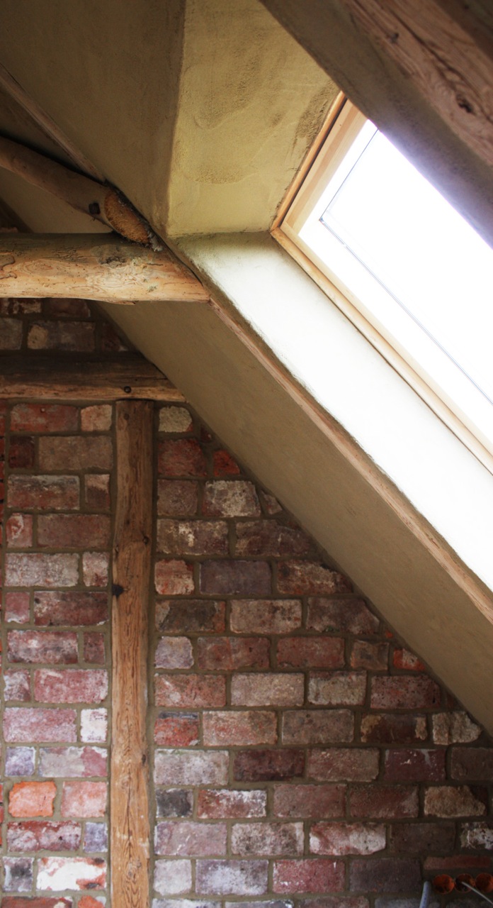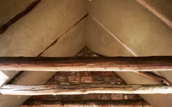 Alter Dachstuhl mit Lehmverputz und gemauerter Giebel