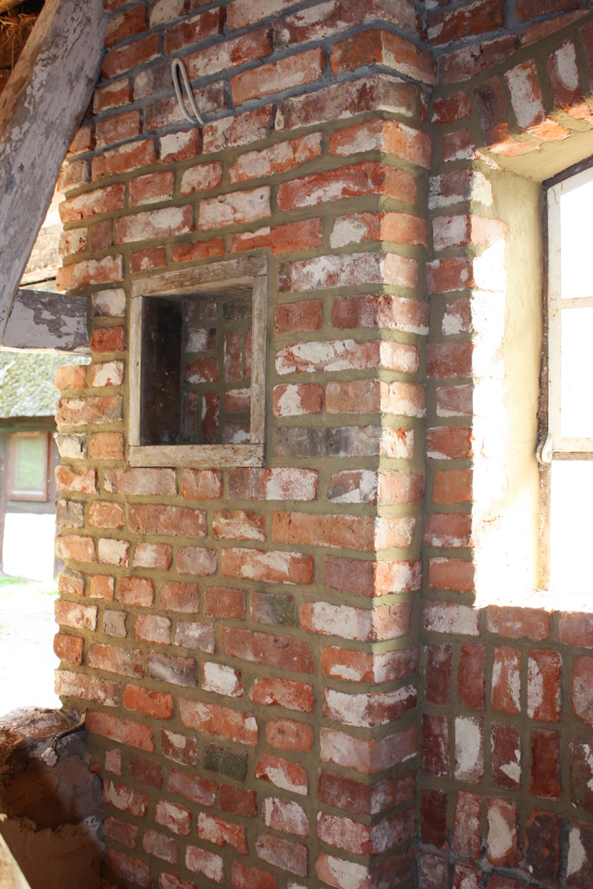 Alter Pferdestall, neue Innenwandschale gemauert aus Backstein eines demontierten Häuslingshaus