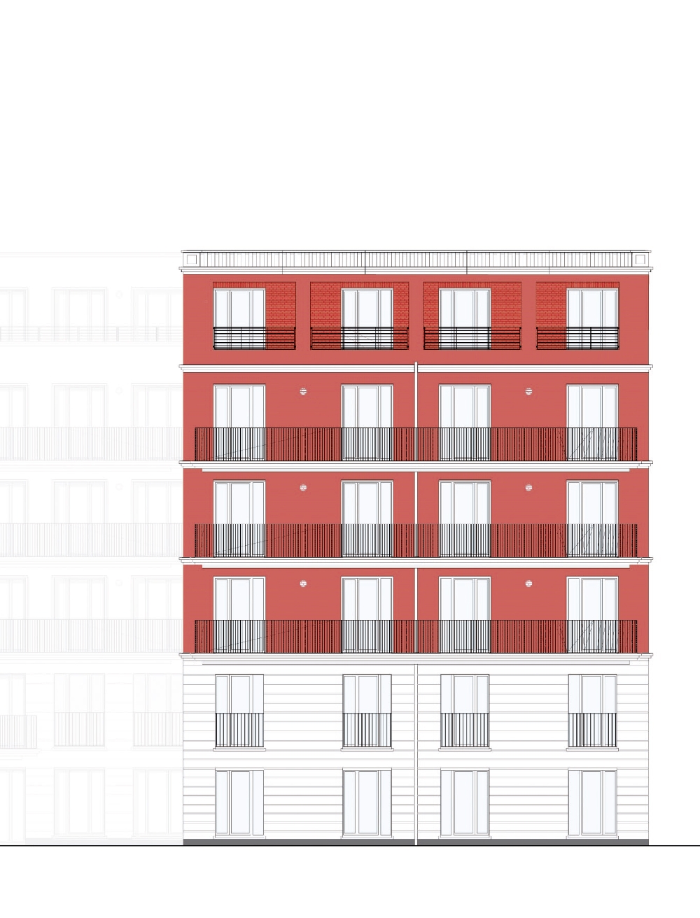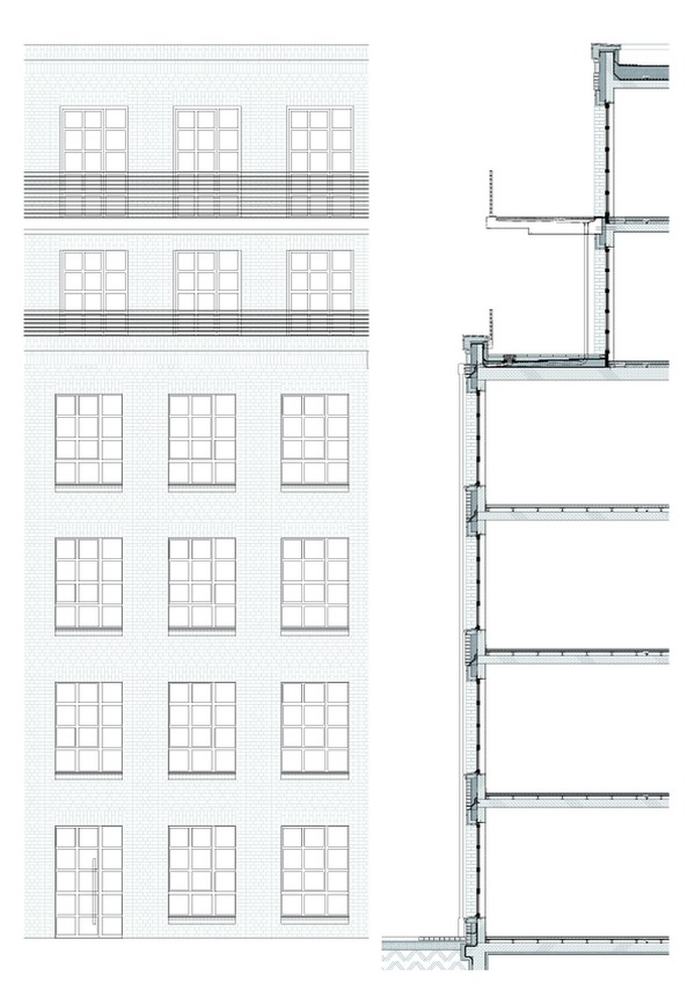 Hansahöfe | Fassadenschnitt, Teilansicht Lofthaus