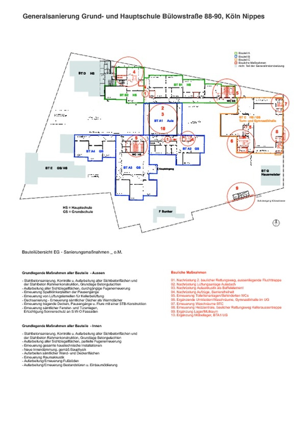 Generalsanierung Grund- und Hauptschule Bülowstraße 88-90, Köln Nippes | Bauteilübersicht EG - Sanierungsmaßnahmen