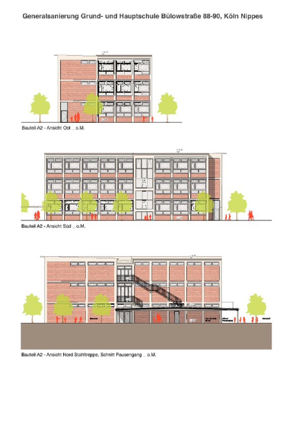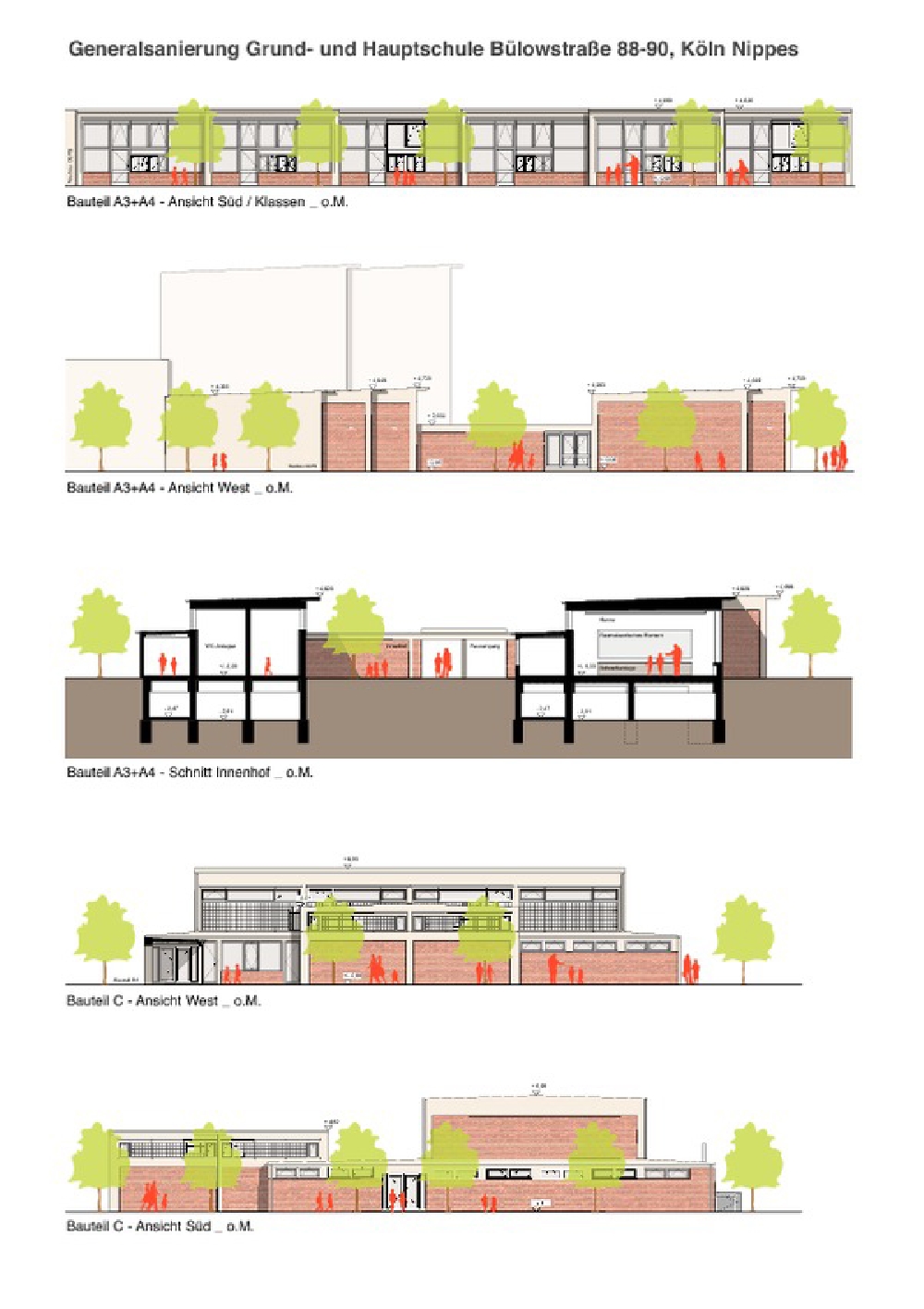 Generalsanierung Grund- und Hauptschule Bülowstraße 88-90, Köln Nippes | Ansichten/Schnitte