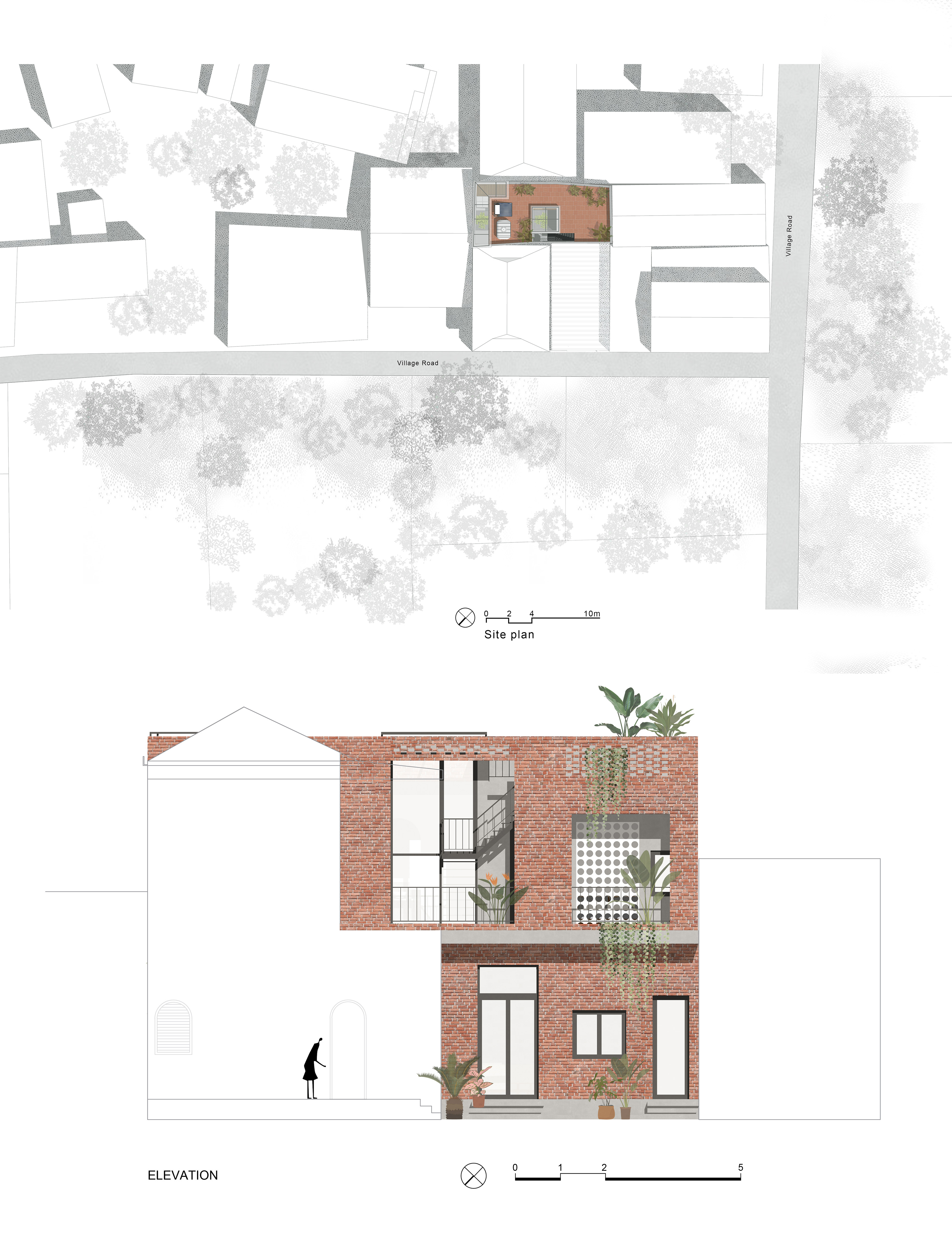 The small Brick House is a tube house with an area of 4.3mx 12m sharing the same yard with an old house of the owner's grandparents in Gia Lam - Hanoi. The house has three sides closed to neighbor's houses and the main front facing northwest. In front is a yard with a corrugated iron roof. The house is designed for a young family of 3 members: a young couple and their son.The owner desires to design a simple 2 storey house with cost effectiveness, good ventilation and rusticity.