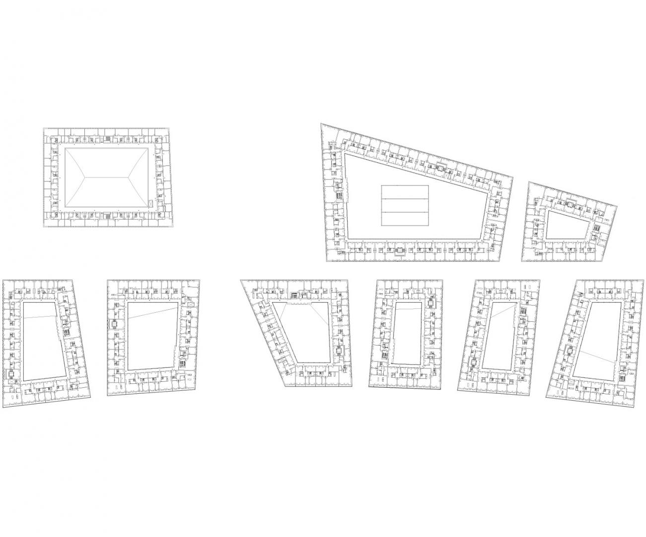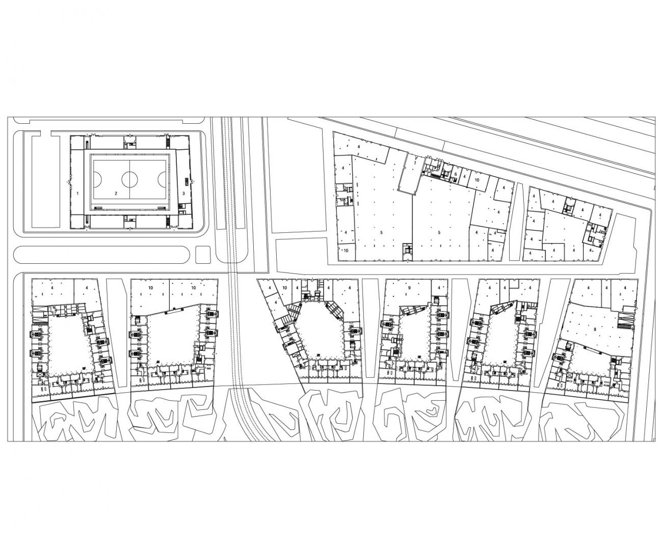 „Dieser Teilplan geht aus einem europäischen Wettbewerbsverfahren hervor, den das Konsortium von Rabo Vastgoed und Foruminvest in Zusammenarbeit mit Rapp+Rapp gewonnen hat. Das Zentrum des Wohnungsbauprojekts Ypenburg bei Den Haag umfasst 481 Wohnungen, 9.650 m² Gewerbefläche, 8.550 m² öffentliche Einrichtungen sowie 15.000 m² Tiefgarage. Der Masterplan von Frits Palmboom erfuhr einige Modifizierungen. So wurde die südliche Bauflucht leicht gebogen, Querverbindungen sowie eine zentrale Einkaufsstraße integriert und jedem Block ein Turm zugefügt. Diese Türme markieren die Eingangsbereiche zu den einzelnen Blöcken und zeichnen zugleich die charakteristische Silhouette von Ypenburg.“