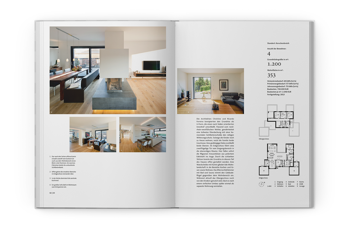 In dem mit zahlreichen Farbfotos und Grundrissplänen illustrierten Band werden 27 herausragende Einfamilienhäuser präsentiert. Keines ähnelt dem anderen, jedes überzeugt durch seine ganz eigene Formensprache. Hier fließen Innen- und Außenbereich regelrecht ineinander, dort mäandert ein kleiner Bach zwischen den Gebäudeteilen hindurch. Wieder anderswo wird eine alte Scheune auf dem Land zum heimeligen Wochenenddomizil einer Großstadt-Familie.