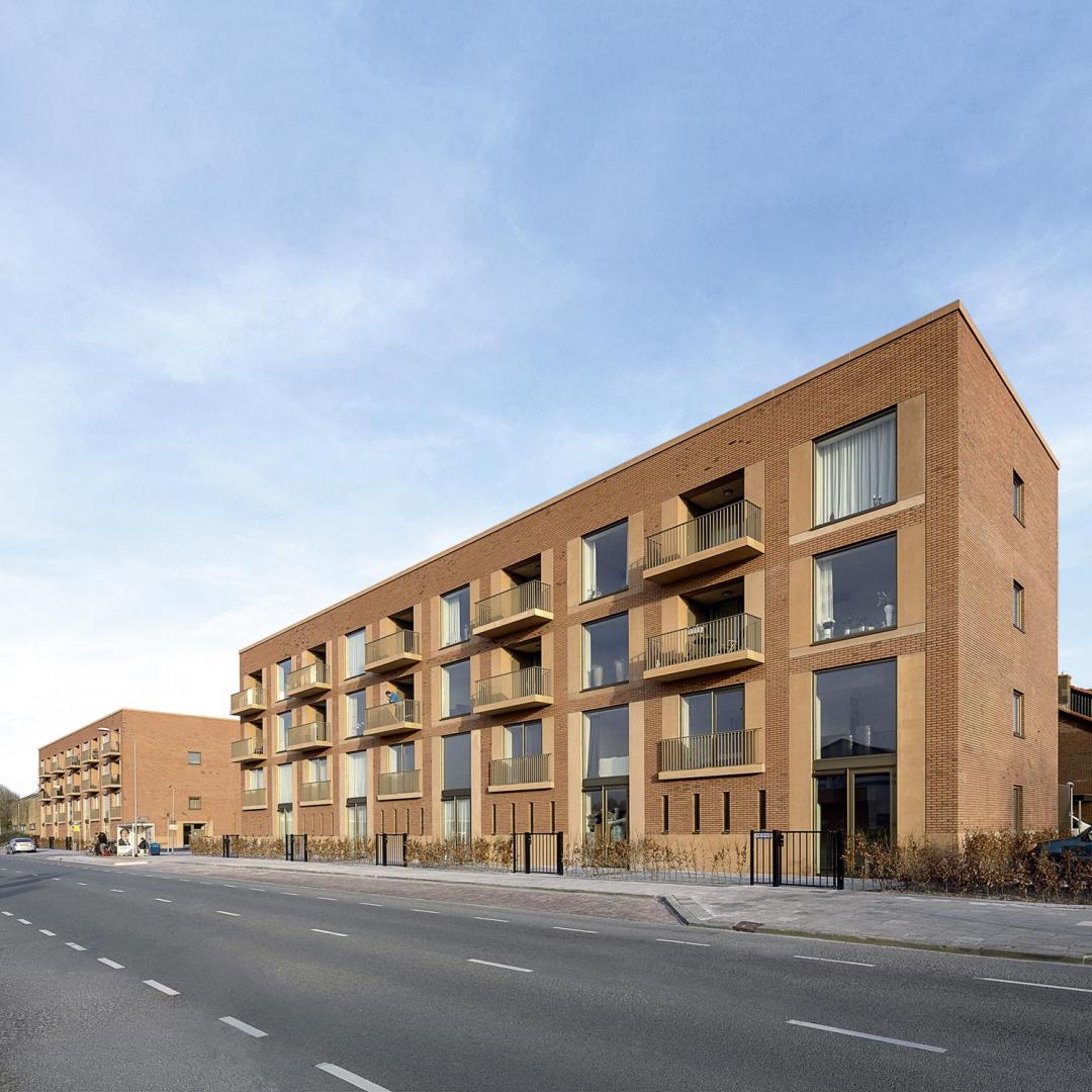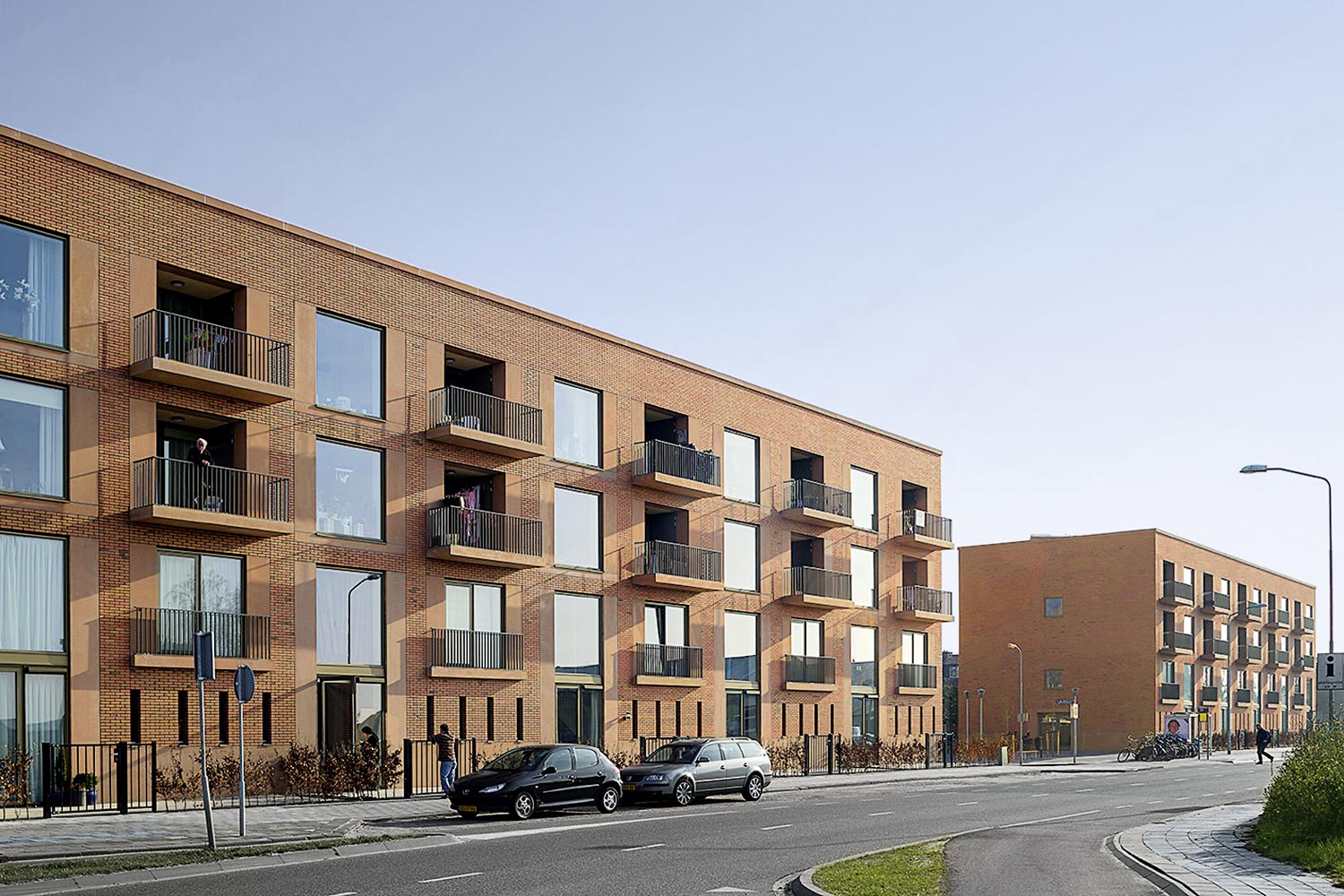 Mark Koopman und Mathieu Kastelijn entwarfen im Auftrag der Wohnungsgesellschaft UWOON zwei Appartementhäuser am Stadtrand von Harderwijk. Von den Stockwerken öffnet sich ein weiter Blick auf den Lelyhaven (Hafen) und das Veluwemeer: ein beispielloser Luxus im sozialen Wohnungsbau. Die zeitlose Architektur sowie die Verwendung von beständigen Materialien machen die Gebäude nachhaltig. Die Fassaden der Wohnungen in der Burgemeester De Meesterstraat unterscheiden sich von den umliegenden Gebäuden durch ihr zurückhaltendes Muster aus Terrakottaziegeln und Beton. Auch die anderen verwendeten Materialien, wie die Fensterrahmen aus Bronze und die Stahlzäune, nehmen an diesem Spiel der warmen, aufeinander abgestimmten Farben teil. Es scheinen sich zwei Gitterraster über die Fassade auszubreiten. In diesem zweifachen optischen Geflecht sorgen die Loggias und Vorhangfassaden für disruptive Aussparungen.