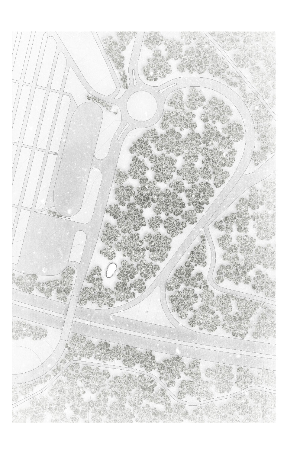 Wie vielerorts in unserer Gesellschaft verschieben und verändern sich traditionelle Strukturen und Gewohnheiten. Auch die geistlichen Institutionen spüren diesen Wandel, denn je weniger die klassische Dorfkirche am Sonntagmorgen frequentiert wird, desto mehr gewinnen Gotteshäuser und Kapellen an vielbefahrenen Straßen unter Pendlern und Fernfahrern an spiritueller Bedeutung. Da die nächstgelegene Autobahnkapelle von Kaiserslautern mehr als anderthalb Stunden entfernt ist, galt es einen lithurgischen Ort der Stille in einem Waldstück an der Autobahnausfahrt Mehlingen zu entwerfen.