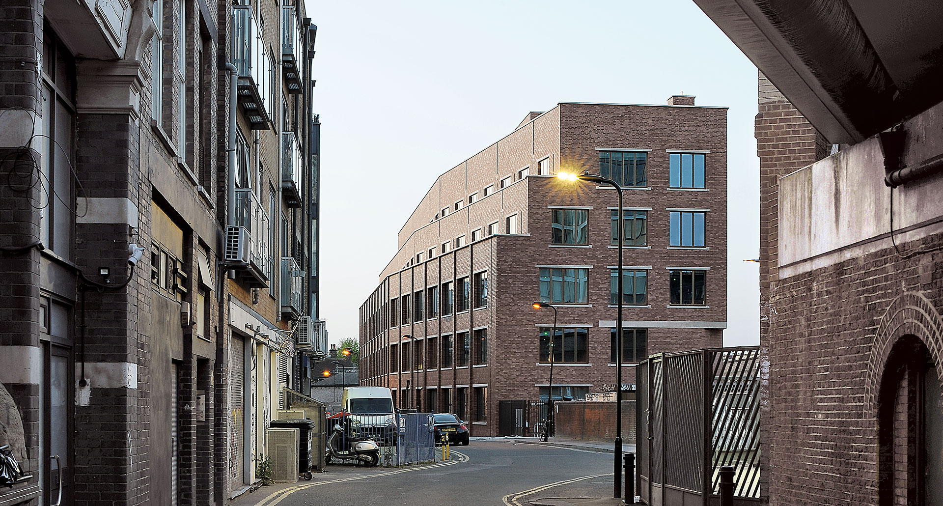 Der Bauplatz im Osten Londons ist sowohl alt als auch neu: Er liegt ganz in der Nähe einer alten Römerstraße, das Grundstück und die Straße daneben sind jedoch das Ergebnis einer Slumsanierung nach dem Zweiten Weltkrieg. Es handelt sich um ein unter Denkmalschutz stehendes Gebiet mit Fabriken, Reihenhäusern, einem Stiftungshaus und einem Eisenbahnviadukt, alles bestehend aus verwittertem Backstein. Das neue Gebäude bildet ein Geschäftszentrum von 5.400 m2 Grundfläche mit 98 Studios und Gemeinschaftseinrichtungen für gewerbliche Mieter. Das Bauprojekt profitiert von der jüngsten Modernisierung der oberirdischen Eisenbahn, verdichtet das städtische Gefüge und bessert dieses aus; es führt die Fundamente der Fabrik aus den 1980er Jahren, die es ersetzt, einer neuen Nutzung zu, indem es sie wiederverwendet.