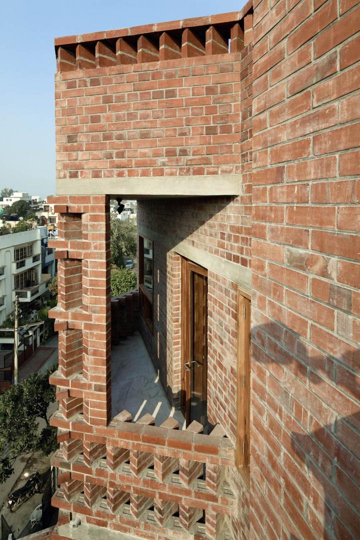 Bei der Residenz Defence Colony wird auf das materielle und tektonische Vokabular zurückgegriffen, das durch eine Vielzahl an Mausoleen und Palästen allgegenwärtig ist, die als Reste der mittelalterlichen, islamischen Architektur des 15. Jahrhunderts das urbane Bild Delhis prägen. Die Residenz verfügt über tragende Backsteinwände und wurde so konzipiert, dass das Gebäude selbst den Belastungen standhält, die in Erdbebenzonen der Klasse 4 erforderlich sind. Vor allem, indem auf ein einzelnes, elementares Baumaterial zurückgegriffen wurde, nämlich den lokalen Backstein, bleibt die Residenz der architektonischen und urbanen Tradition treu.