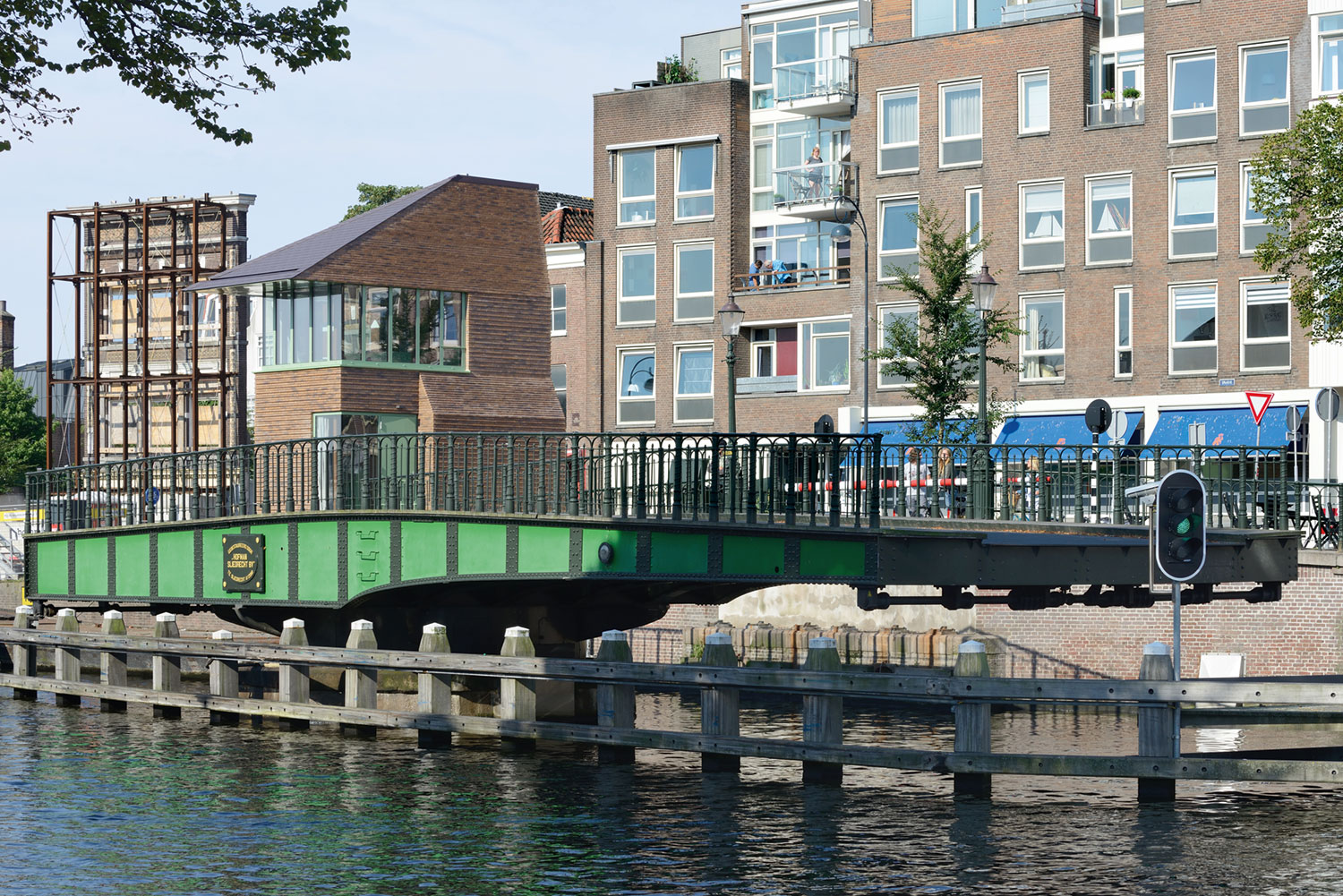 Wo Brückenhaus und Milchbrücke verschmelzen, ist in Haarlem „’t Melkhuisje“ entstanden. Das „Milchhaus“ vereint Trafostation und Brückenposten und zieht mit viel Sinn für Details die Blicke auf sich.