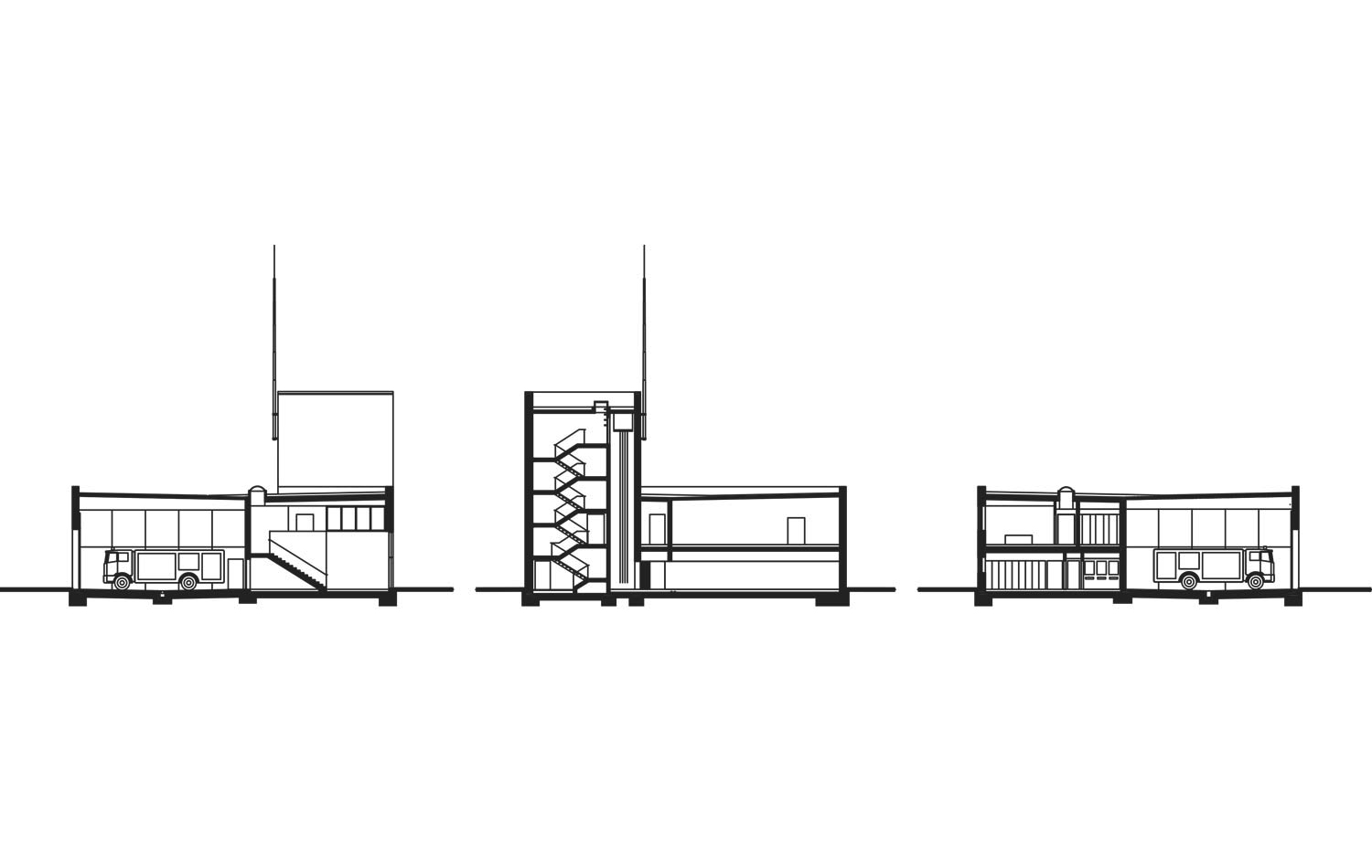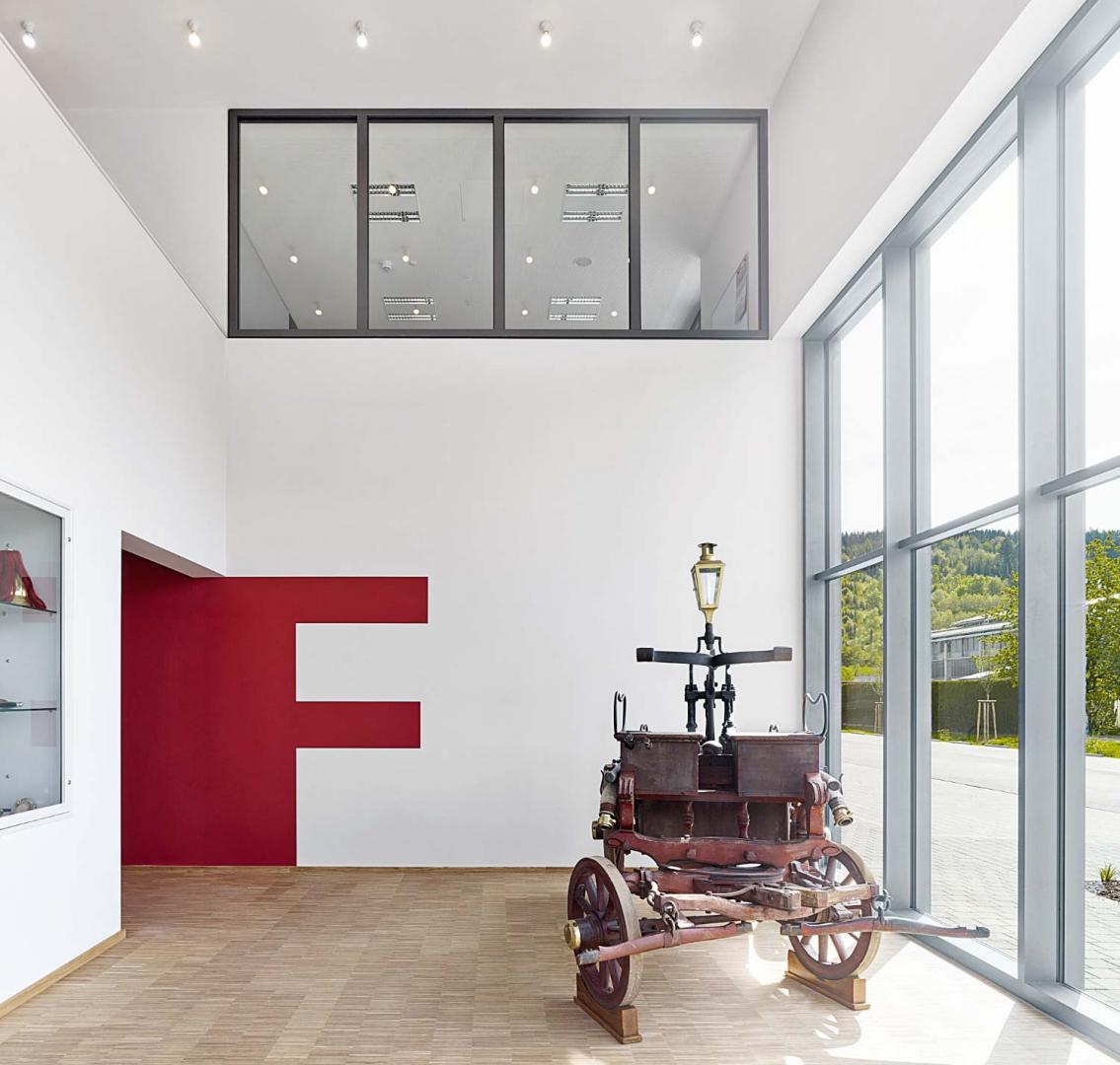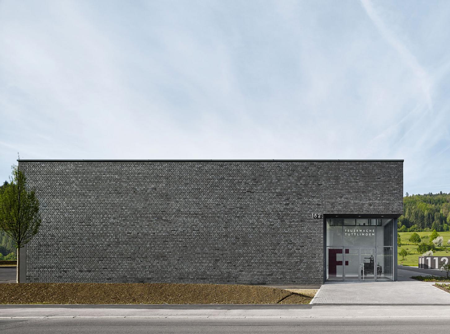 Das neue Feuerwehrgebäude ordnet sich mit einem einfachen, längs gerichteten Bauvolumen in den städtebaulichen Kontext vorstädtischer Gewerbebauten ein und tritt in räumliche Beziehung zum parallel stehenden Polizeigebäude auf dem Nachbargrundstück im Westen. Nach außen hin tritt es durch einen offenen Vorplatz, etwas von der Straße abgerückt, mit seiner transparent einsehbaren Fahrzeughalle weithin sichtbar in Erscheinung und bildet so einen angemessenen baulichen Auftakt am Stadteingang von Tuttlingen. Die vielfältigen Gebäudefunktionen der Feuerwehr werden in ein geometrisch reduziertes, zweigeschossiges Baukörpervolumen integriert. Dabei werden architektonische Ausdrucksformen, die diese einfache Gebäudedisposition verunklären könnten, bewusst vermieden.
