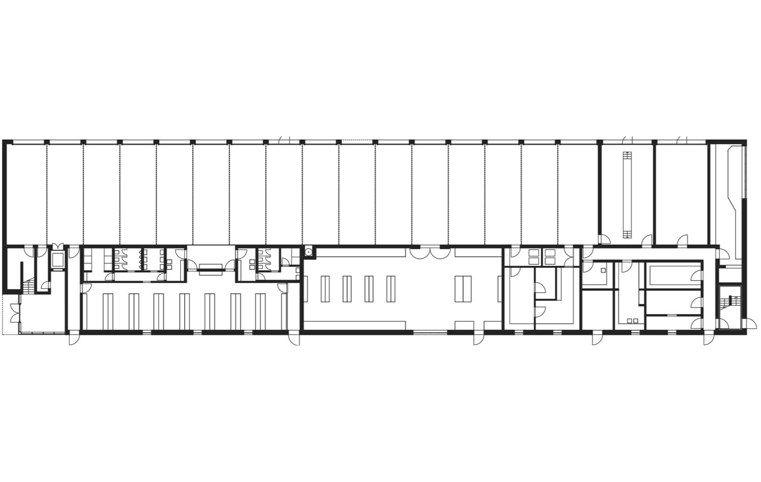 Die hier eingesetzten, fein gegliederten Stahl- und Glaselemente erzeugen eine weitere Differenzierung mit räumlicher Tiefenstaffelung. Der Backstein mit seinem fein nuancierten Farbspiel, das durch den natürlichen Wechsel von Absorption und Reflexion des Lichts auf der Klinkeroberfläche entsteht, bildet einen spannungsvollen Kontrast zu den großen Fassadenöffnungen, die den Fokus auf Eingangsfoyer und Übungstreppe lenken. Die Lagebestimmung des Bauvolumens auf dem Grundstück sowie die Verteilung der Raumbereiche innerhalb des Gebäudes werden neben städtebaulichen Prämissen vor allem durch die betrieblichen Abläufe und Zielsetzungen der Feuerwehr bestimmt: Der längs gerichtete Baukörper gliedert die Grundstücksfläche in zwei Bereiche, die im Süden des Geländes miteinander verbunden sind. Die Alarmzufahrt mit Alarmparkplatz ist auf der westlichen Grundstücksseite angeordnet. Auf der östlichen Seite befindet sich die Alarmausfahrt mit den zugeordneten 16 Fahrzeugboxen. Im Süden schließt ein 15 Meter hoher Übungs- und Schlauchturm als integraler Bestandteil die Gebäudefigur ab.
