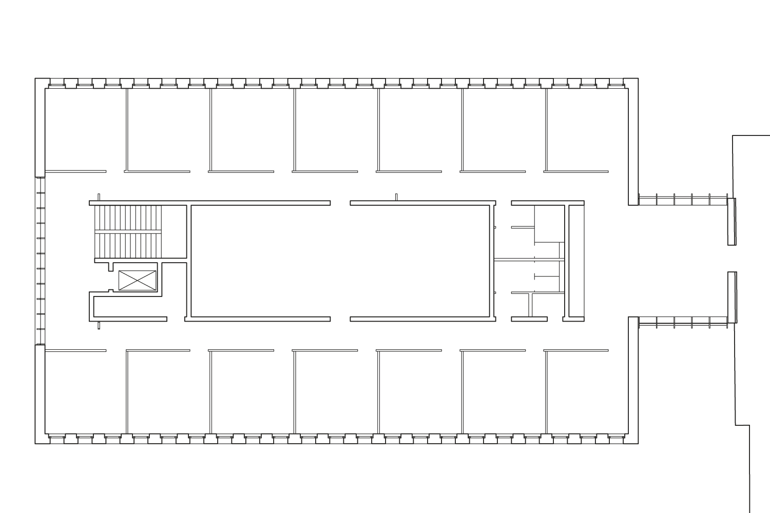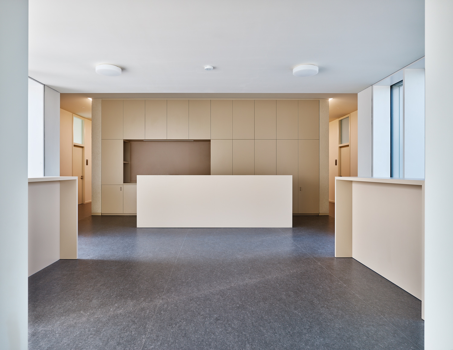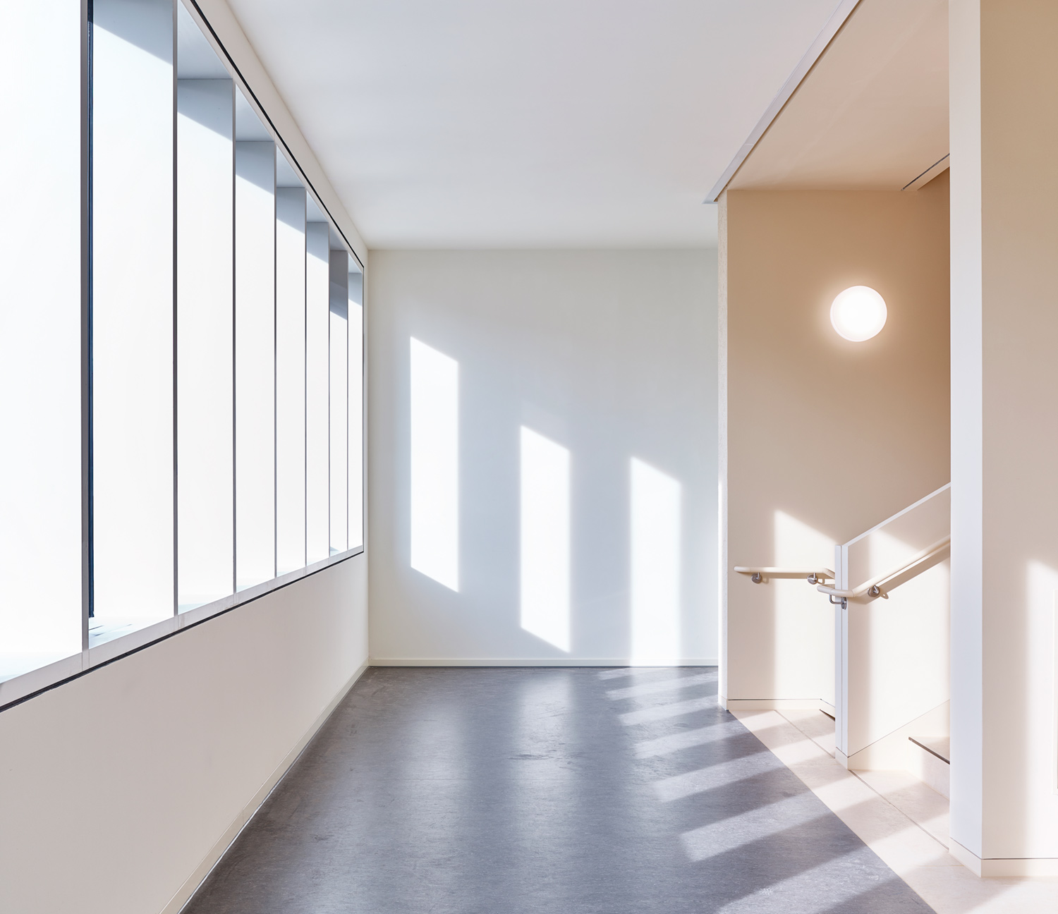 Die Gestaltung der Innenräume ist geprägt von einem klaren und funktionalen Grundriss. Die dreispännige Anordnung ermöglicht Büroräume an den Außenwänden und Aktenarchive in der Mitte. Das Dachgeschoss nimmt Bezug auf die Umgebung. Die kompakte Ausbildung des Baukörpers ist vorteilhaft im Hinblick auf Nachhaltigkeit und Energiekonzept, sodass die Umsetzung des gewählten Passivhausstandards begünstigt wird.
