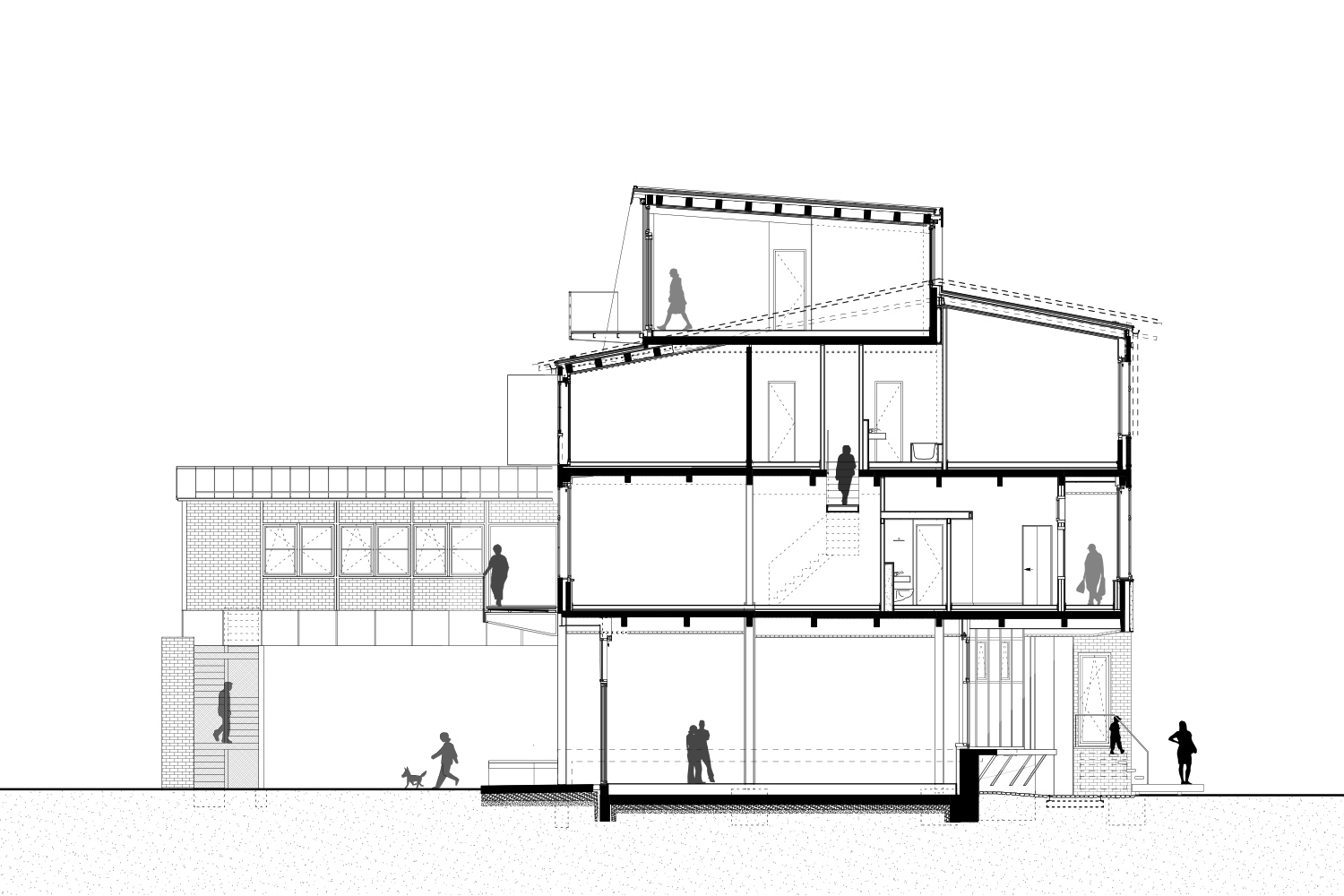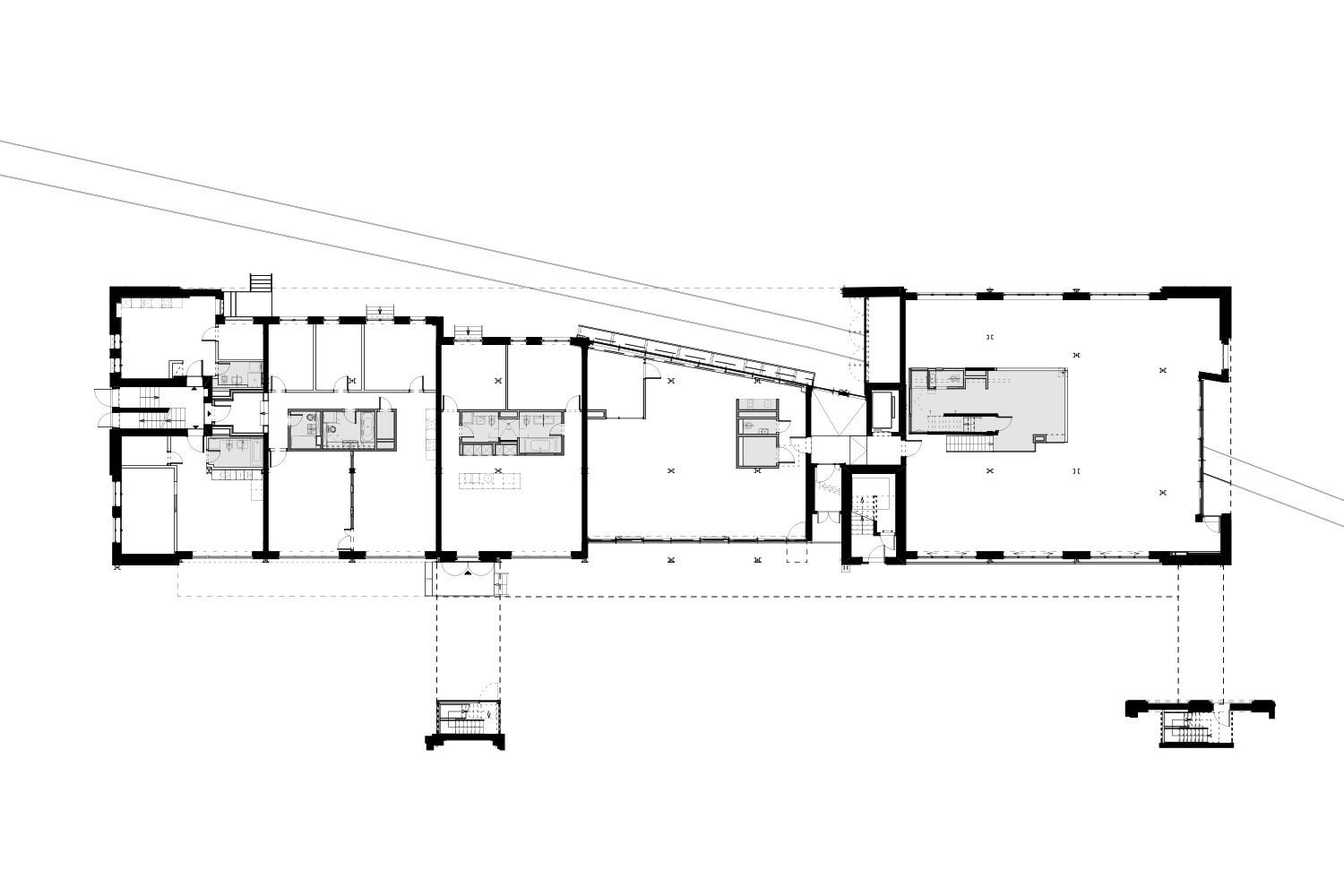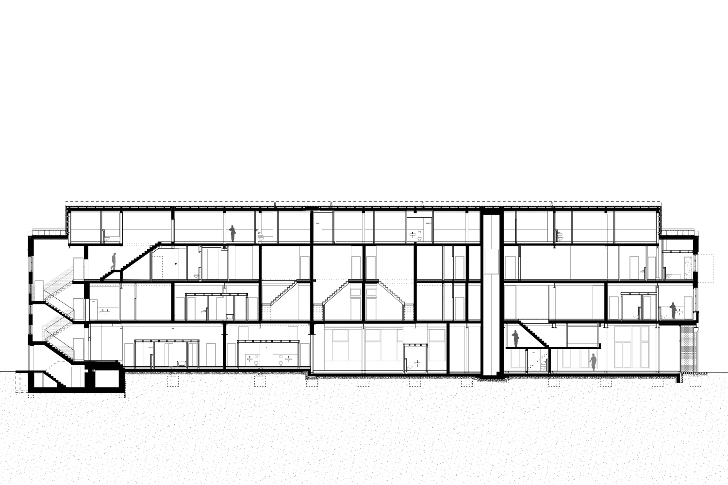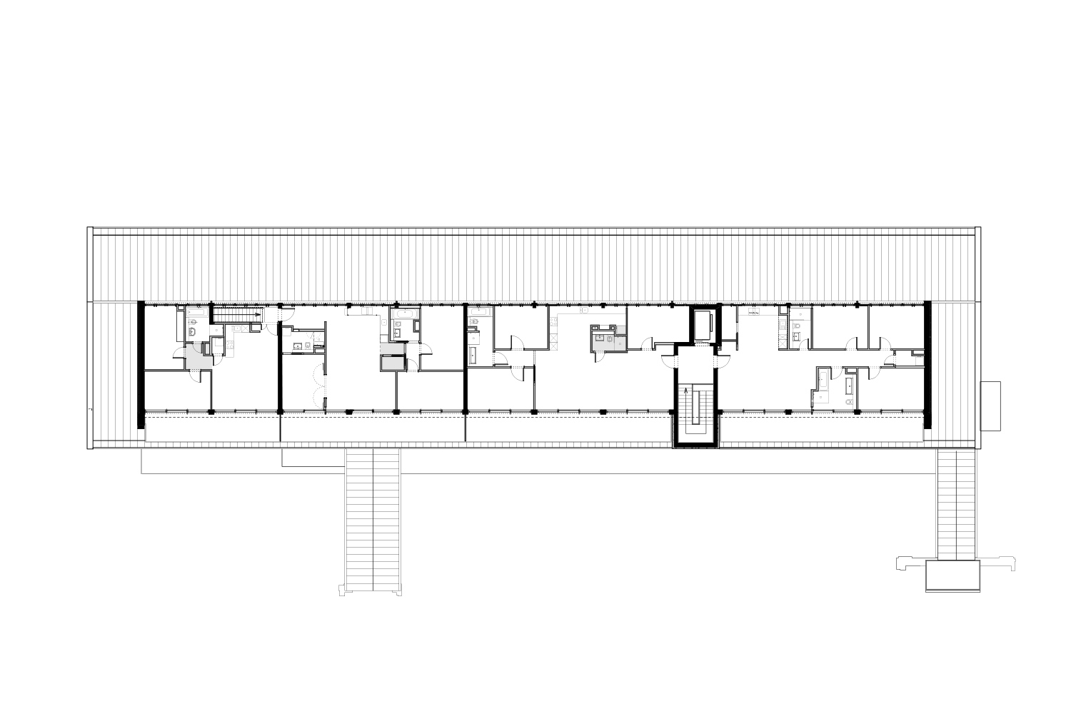Eyrich-Hertweck Architekten haben für diese Baugruppe das ehemalige Werkstattgebäude umgebaut und aus dem Fabrikgebäude ein Wohngebäude mit 25 Wohnungen und einer Gewerbeeinheit gemacht. Behutsam wurde der denkmalgeschützte Bestand saniert und wieder seiner ursprünglichen Gestalt angenähert. Dunkle Zinkfassaden mit großen Fenstern umschließen das einst offene Erdgeschoss und – als Reminiszenz an das frühere Bitumendach – auch das neue aufgestockte Dachgeschoss. Aktuelle Ergänzungen, darunter neue Balkone, sind im Kontrast dazu mit wetterfestem, rostendem Baustahl verkleidet. Durch direkte Zugänge zu einzelnen Wohnungen von außen und einem inneren Laubengang mit Maisonetten konnte darauf verzichtet werden, ein weiteres Treppenhaus in die alte Bausubstanz einzuschneiden: die bestehenden wurden zur Erschließung des Dachgeschosses erweitert und um einen Aufzug ergänzt.