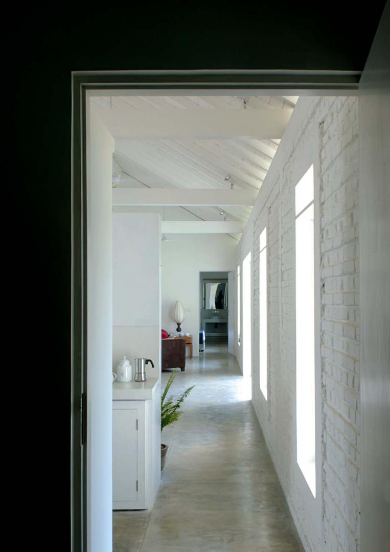Die räumliche und strukturelle Gestaltung des Gebäudes wurde so klar und hell wie möglich gehalten. So entstand ein großes, weißes Gebäude, in dem alle Räume Platz finden und um einen großen Wohnbereich angeordnet sind (die lange Form ist durch die strengen lokalen Vorschriften für das Bauen an der Küstenlinie bedingt).