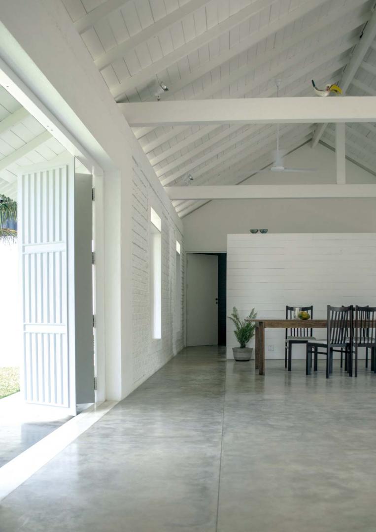 Fernab jeder Kolonialstil-Romantik drückt sich die Qualität des Strandhauses in seiner zurückhaltenden Präsenz und kontrastierenden Materialität aus.