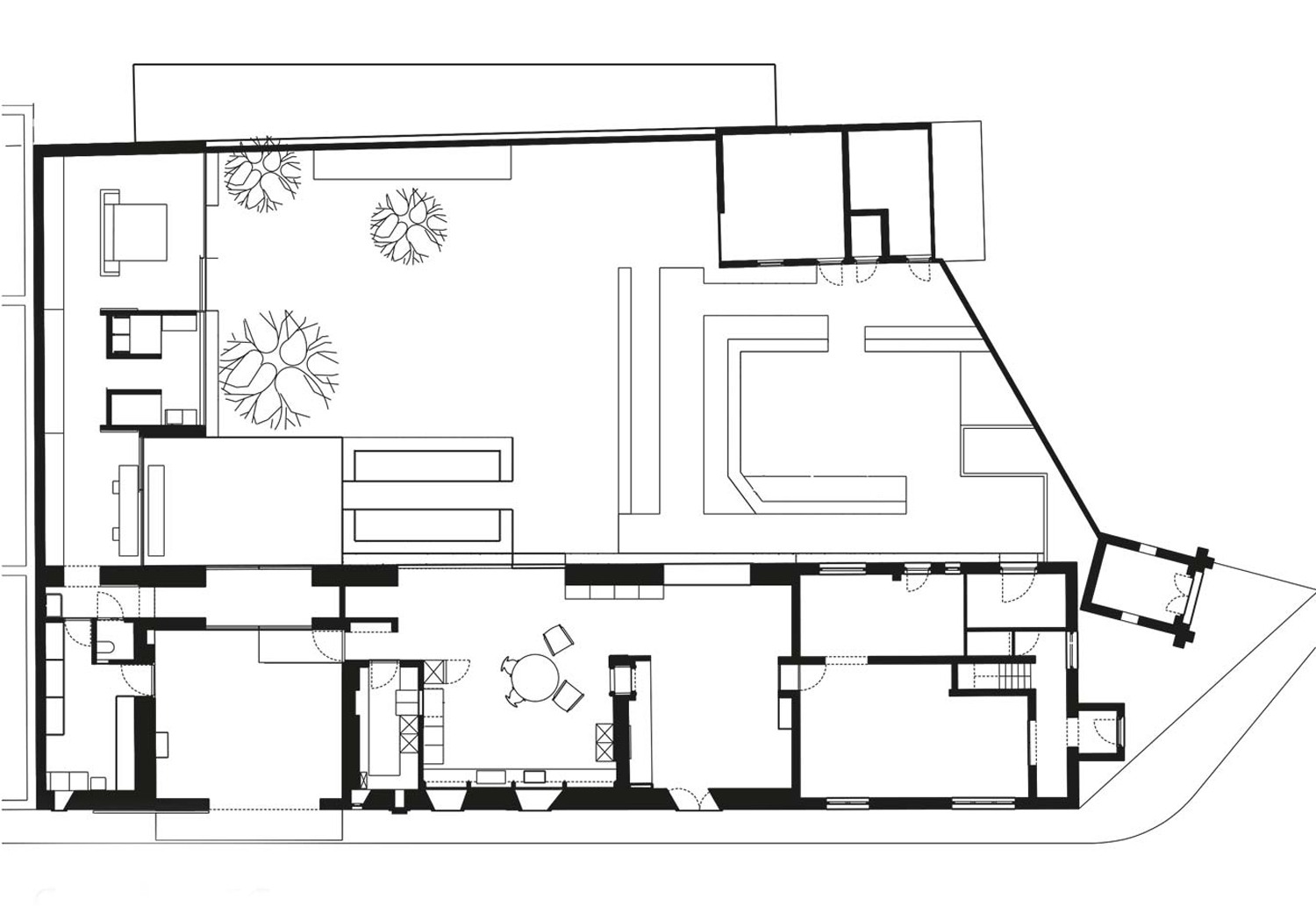 Das renovierte Wohnhaus beherbergte früher eine Reihe verschiedener Arbeiterwohnungen. Im Laufe der Zeit wuchs jedes Haus separat weiter und verschmolz schließlich zu einem einzigen Gebäude. An den Fassaden sind deutlich die Spuren der vielen Bauphasen zu erkennen. Deshalb entschied man sich bei der aktuellen Umbaumaßnahme dafür, diesen Weg organischen Wachstums zu verlassen und eine neue architektonische Sprache einzuführen. So wurden neue Fensteröffnungen geschaffen, überflüssige bestehende Türen zugemauert und neue Türöffnungen aufgebrochen. Die Bauschreinerei verlieh den neuen Öffnungen ein klar gegliedertes Profil, indem diese bewusst vor der Wandfläche platziert wurden, so dass den vorhandenen, oft schiefen Wänden optischer Halt gegeben wurde. Das Gebäude wurde vorsichtig und schonend gereinigt und alle Wände mit einer neuen, warmen Farbe gestrichen, um den vielfältigen Veränderungen ein gemeinsames Gesicht zu geben.