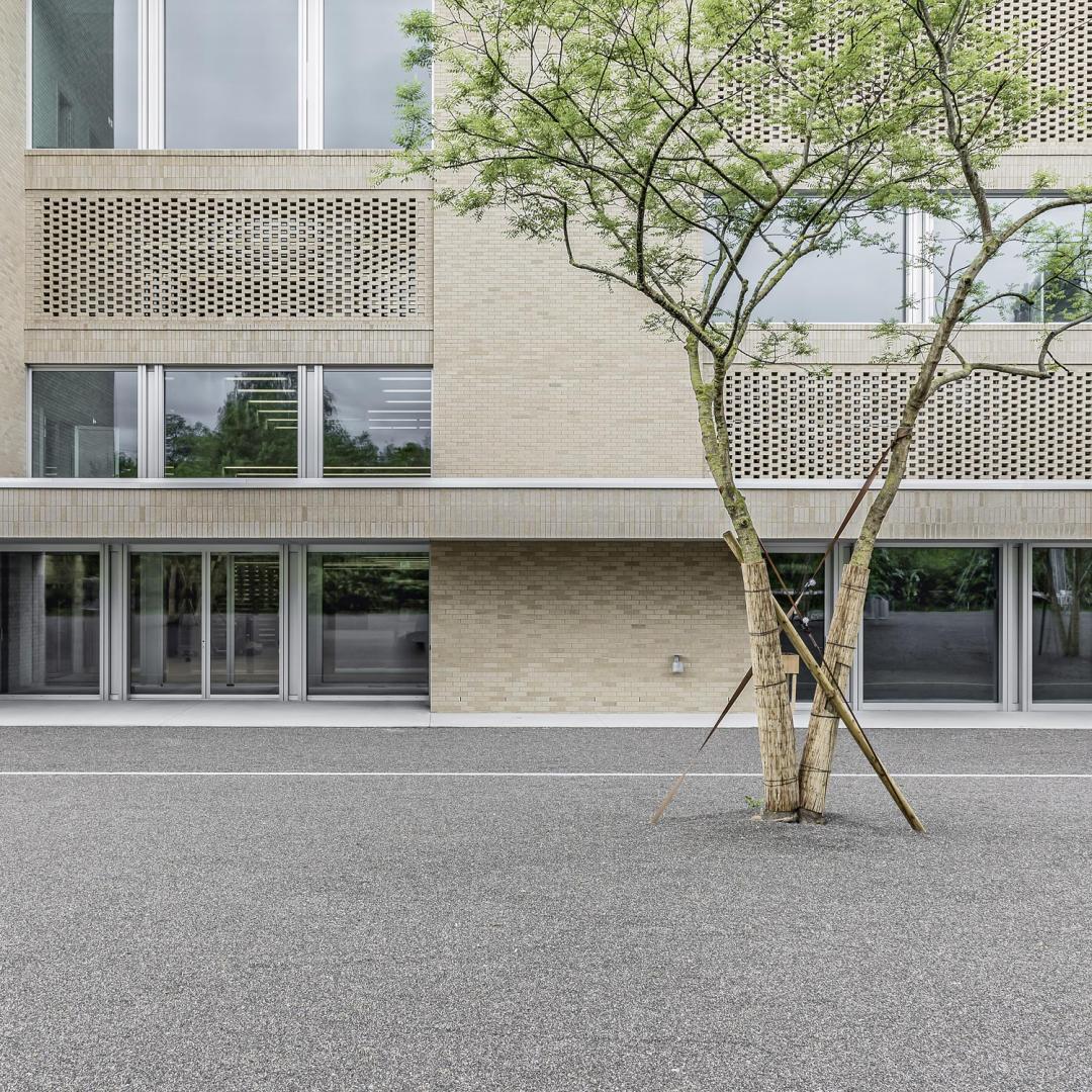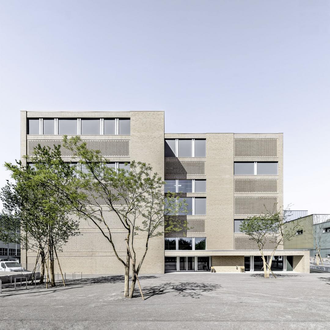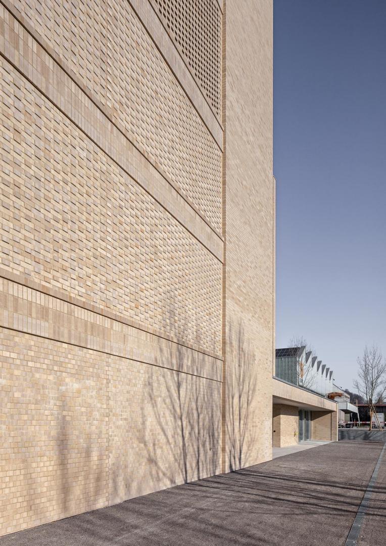 Die Konstruktionsweise des Gebäudes ist sehr robust und entspricht der gerichteten Trag- und der entworfenen Raumstruktur. Mit der Mischbauweise von Ort- und Vorfabrikationsbeton wird geschickt auf die vorhandenen Spannweiten reagiert. Das Low-tech-Haustechnikkonzept entspricht dem gewählten architektonischen Ausdruck. Die Klinkerfassade übersetzt die physische Schwere und Prägnanz des Baukörpers ins Äußere. Die großflächigen und ruhigen Strukturierungen der Klinkerhülle bilden die innere Logik und mit ihr die Raumschichten ab. Relief, Filtermauerwerk und Lisenen sind Hauptmerkmale der Tektonik der Klinkerfassade. Die innere mineralische Materialwelt wird dabei sehr stimmungsvoll ergänzt und folgt dem architektonischen Credo einer „gepflegten Rauheit“ im Ausdruck. Das Projekt überzeugt in seinem gesamten Erscheinungsbild durch eine feinfühlige Auseinandersetzung mit dem Ort und der gestellten Bauaufgabe. Dadurch ergibt sich eine klingende, architektonische Manifestation mit einem ausdrucksstarken, skulpturalen Volumen in Klinkersteinen.