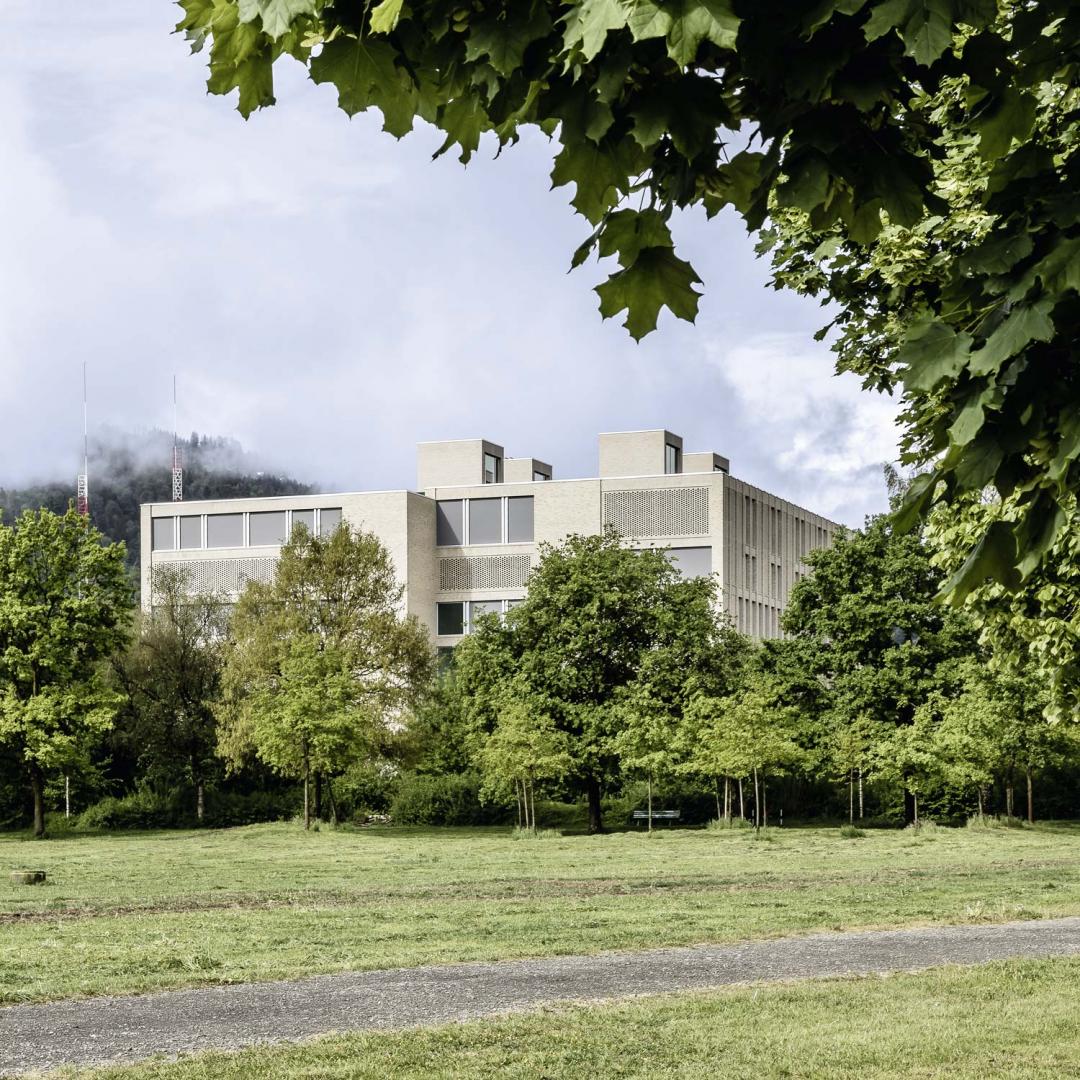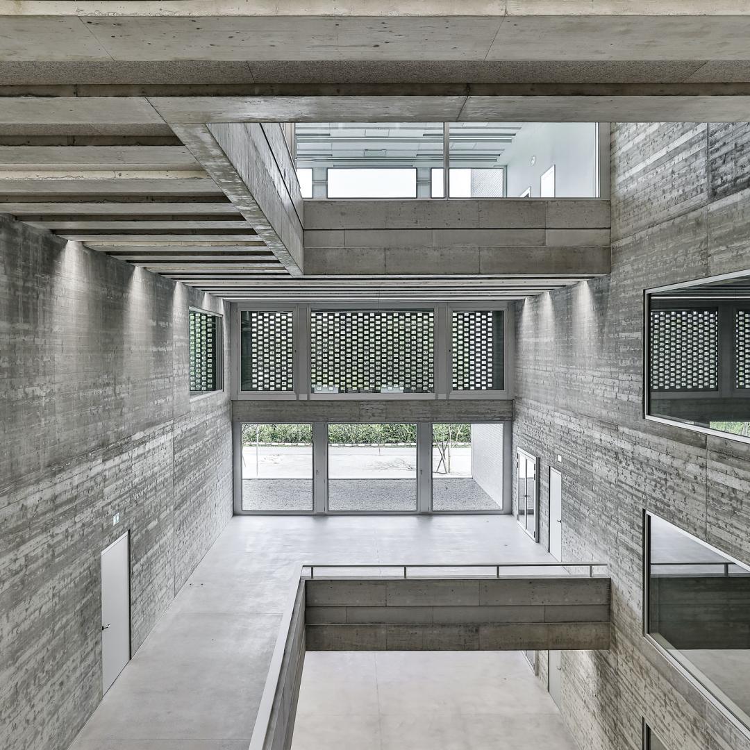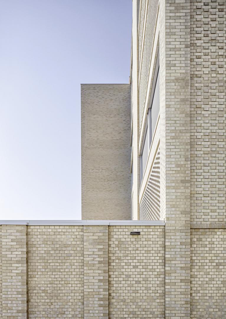 Die Konstruktionsweise des Gebäudes ist sehr robust und entspricht der gerichteten Trag- und der entworfenen Raumstruktur. Mit der Mischbauweise von Ort- und Vorfabrikationsbeton wird geschickt auf die vorhandenen Spannweiten reagiert. Das Low-tech-Haustechnikkonzept entspricht dem gewählten architektonischen Ausdruck. Die Klinkerfassade übersetzt die physische Schwere und Prägnanz des Baukörpers ins Äußere. Die großflächigen und ruhigen Strukturierungen der Klinkerhülle bilden die innere Logik und mit ihr die Raumschichten ab. Relief, Filtermauerwerk und Lisenen sind Hauptmerkmale der Tektonik der Klinkerfassade. Die innere mineralische Materialwelt wird dabei sehr stimmungsvoll ergänzt und folgt dem architektonischen Credo einer „gepflegten Rauheit“ im Ausdruck. Das Projekt überzeugt in seinem gesamten Erscheinungsbild durch eine feinfühlige Auseinandersetzung mit dem Ort und der gestellten Bauaufgabe. Dadurch ergibt sich eine klingende, architektonische Manifestation mit einem ausdrucksstarken, skulpturalen Volumen in Klinkersteinen.
