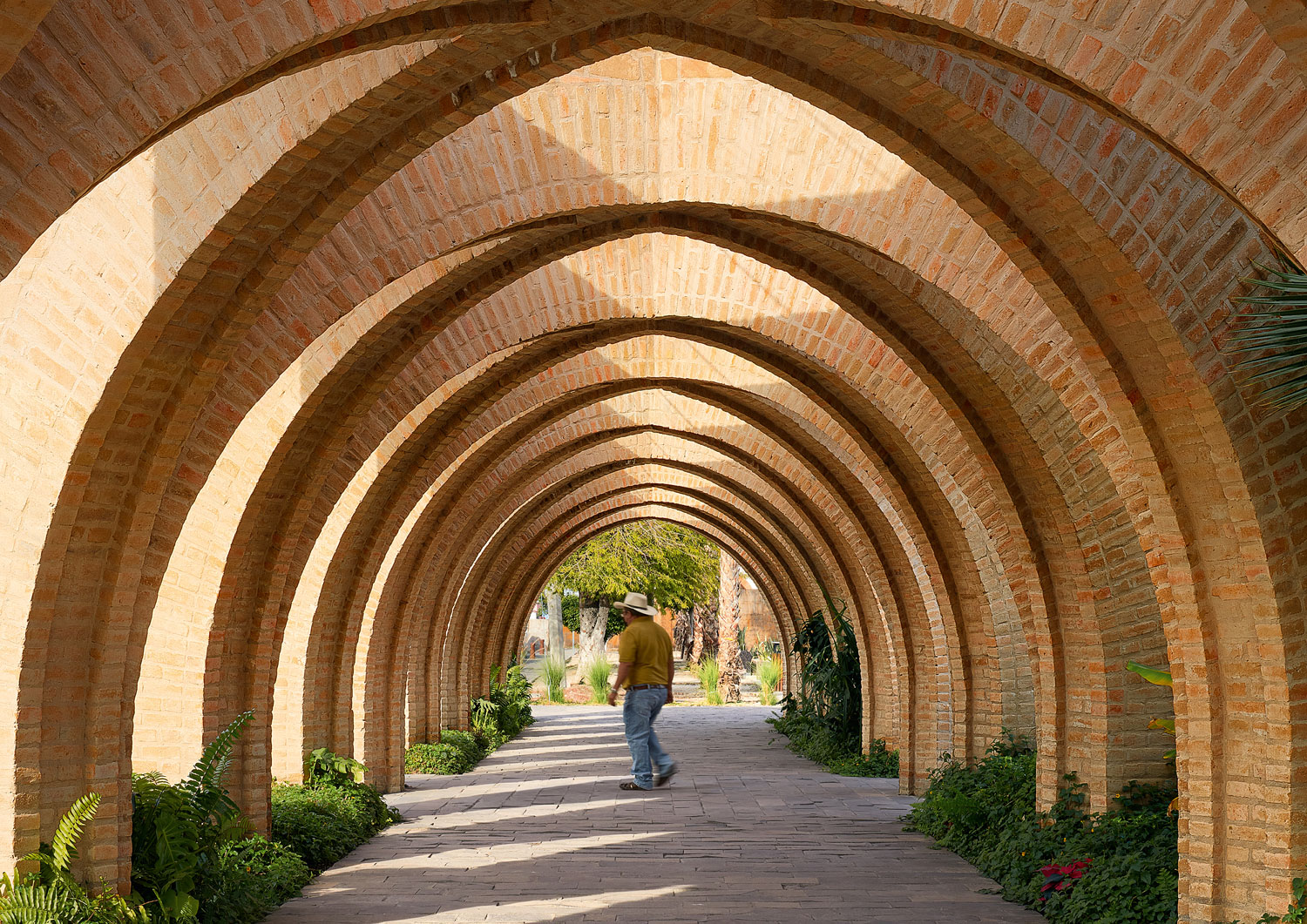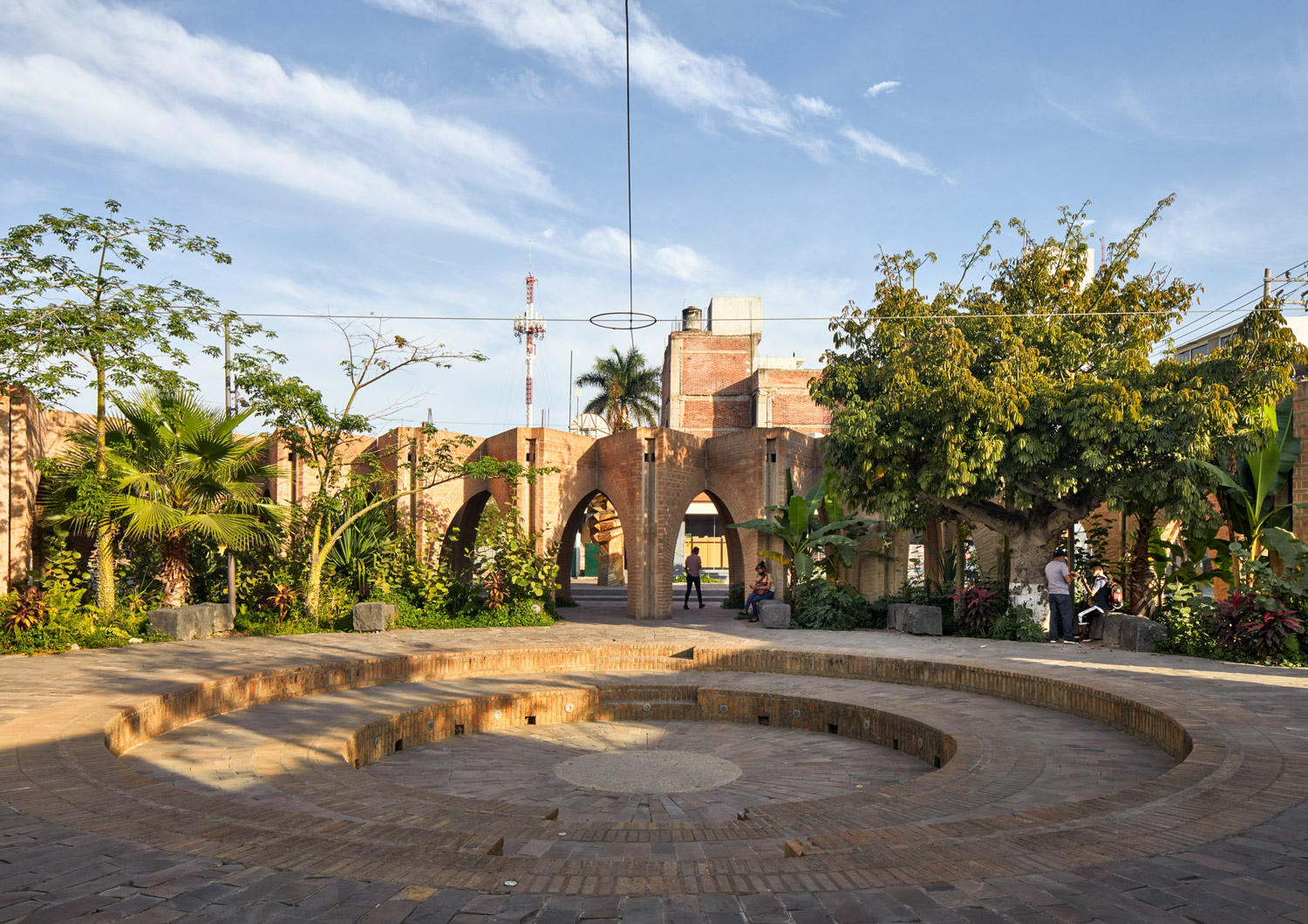 Community representatives, historians, architects, authorities and the population were all actors in an open and participatory process. The materials used are handcrafted ochre brick, gray basalt stone for paving, and an extensive selection of local plant species. The bricks were handmade on site, and the artisans who designed the building are part of the community. During the year that construction took place, the participation that began with the design process expanded to the construction process. For it was masons from Jojutla itself who put up the arches, laid out the gardens and designed the square.