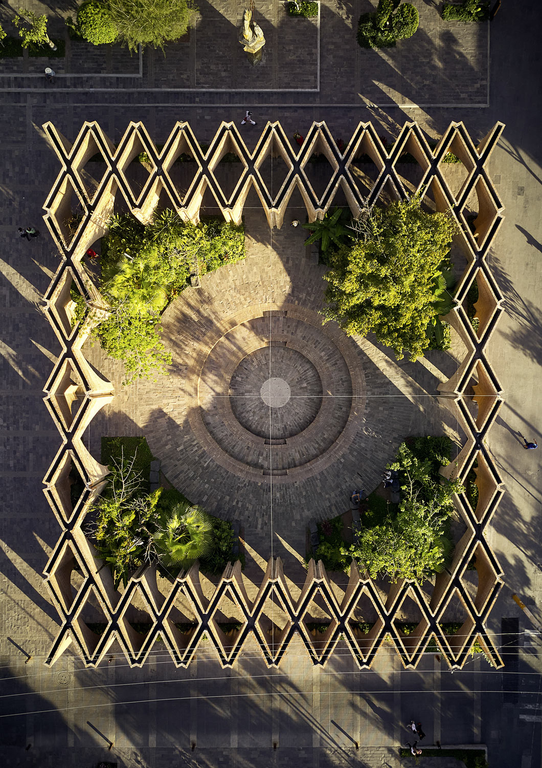The arcades that exist next to the gardens are structures that reinterpret the traditional architecture of the region. Different qualities of space and experience have been created for each of the spaces: Recreational and community gathering spaces, a civic plaza, and an outdoor forum. Spaces that recognize and reinforce transit, pause, leisure, and encounter among their users. Creating an urban plaza with a new identity was only possible by understanding, ordering, and assigning a new role to each of the previously separate spatial elements, while maintaining a strong connection between them.