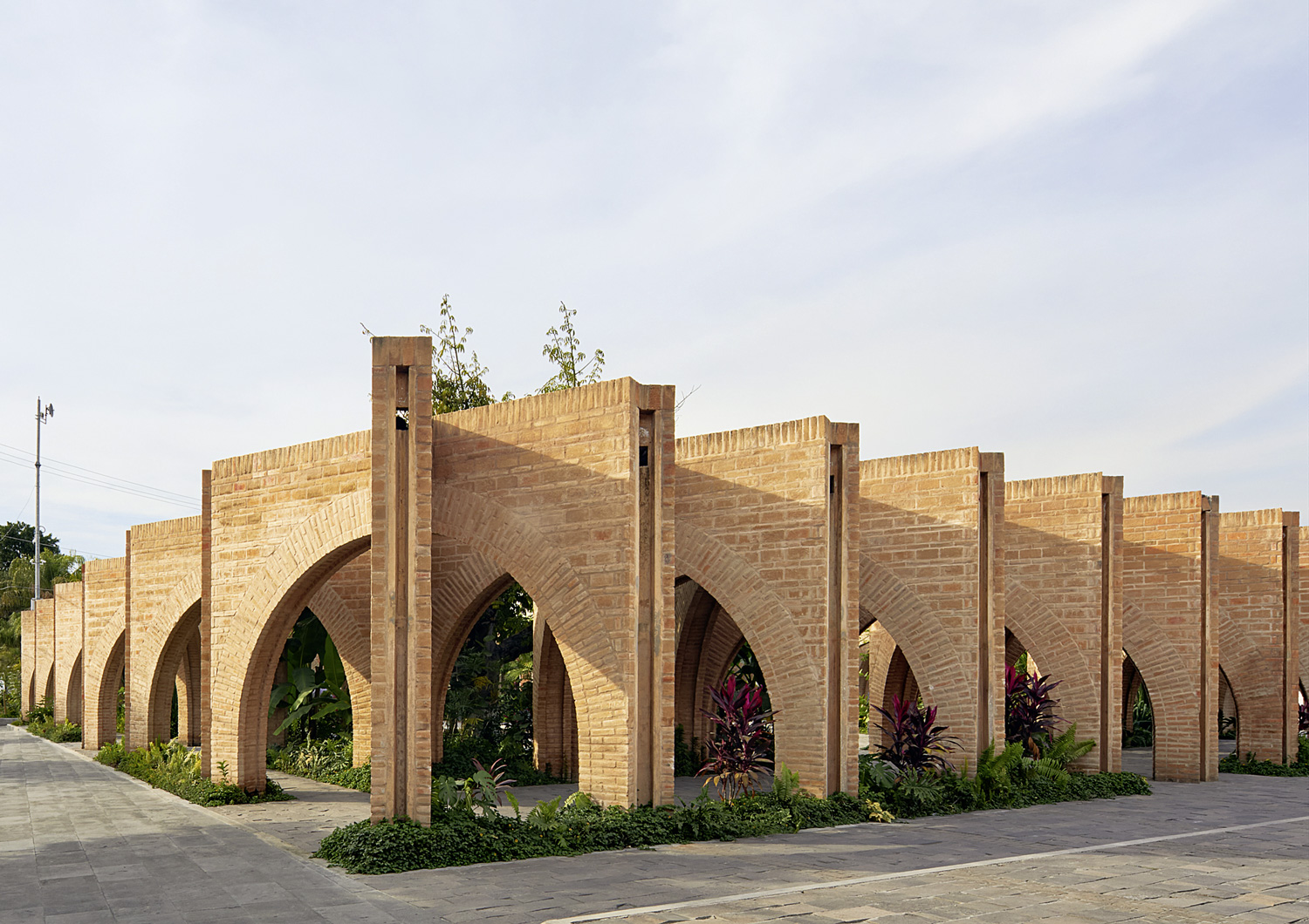 After the devastation of an earthquake, a place has been revitalized through reinterpreted traditional architecture. The square, designed with brick arches, is an expression of regional craftsmanship and provides a place for citizens to meet.