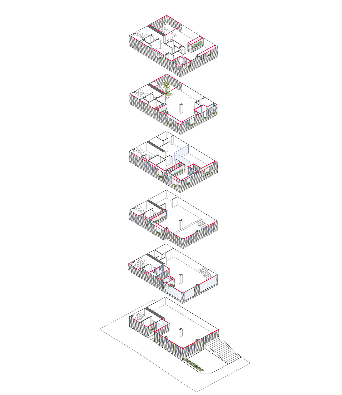 Die Herausforderung bestand darin, die Eigenschaften von Ziegeln als Baumaterial einer Neubewertung zu unterziehen. Das Erscheinungsbild der herkömmlichen Mauer wurde als neuartiger Block neu interpretiert, der nicht nur als Fassade dient, sondern auch schall- und wärmedämmend wirkt sowie für natürlichen Lichteinfall sorgt.