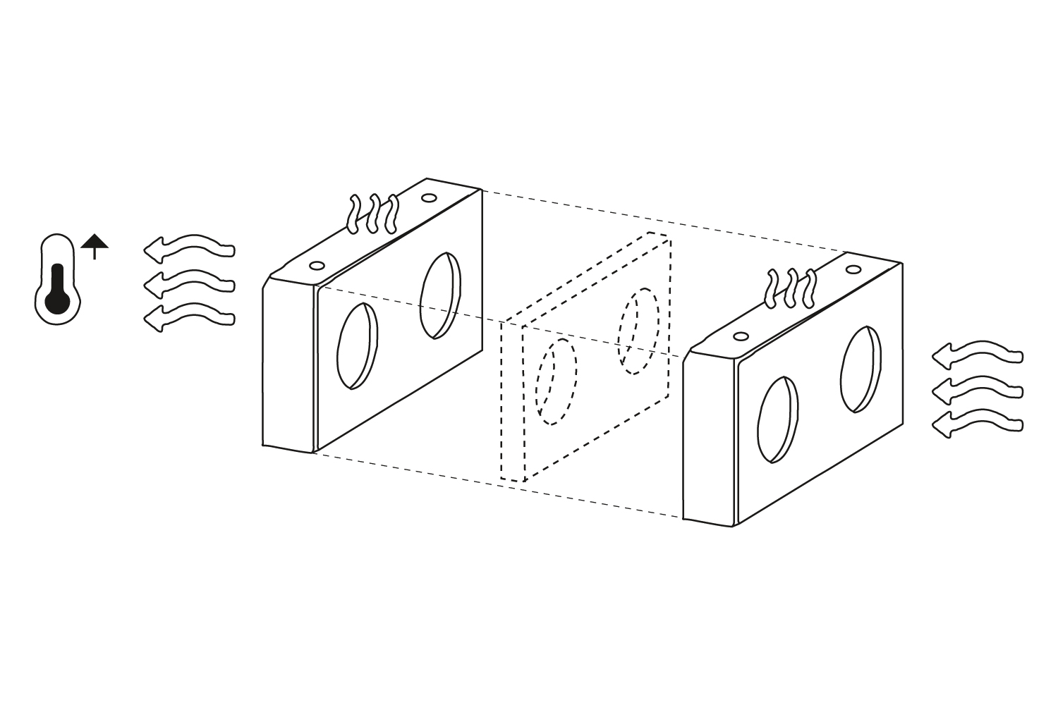 Der Block aus Ziegelsteinen und Glas beruht auf der Idee, die Mauer und das Fenster in einer Einheit zu verbinden. Eine Reihe von Experimenten mündete schließlich in eine Verbindung aus einem vorfabrizierten Ziegelstein mit einer handgefertigten Glasmasse. Zwischen die beiden Ziegelsteinschichten wurde sodann eine Lage Bauschaum als Schall- und Wärmeschutz eingebracht.
