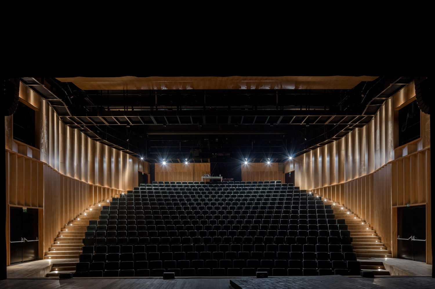 Die verschiedenen Ziegel und Muster verstärken die Kontraste zwischen Hell und Dunkel. Schatten werden stärker, Teile der Fassade leuchten auf. In der Nacht erfährt das Gebäude eine Metamorphose: Mondlicht spiegelt sich in den Backstein-Fassaden, der Aluminiumsockel glänzt im Licht der vorbeifahrenden Autos und Radfahrer. Die Welt des Theaters spielt sich oft im Halbdunkel ab. Es ist eine Welt, in der die Realität verschwimmt und die Fantasie an Kraft gewinnt. Das Gebäude fügt sich in diese Welt ein, zieht sich in den Schatten der Stadt zurück, um dann unerwartet aufzuleuchten und zu erstaunen.