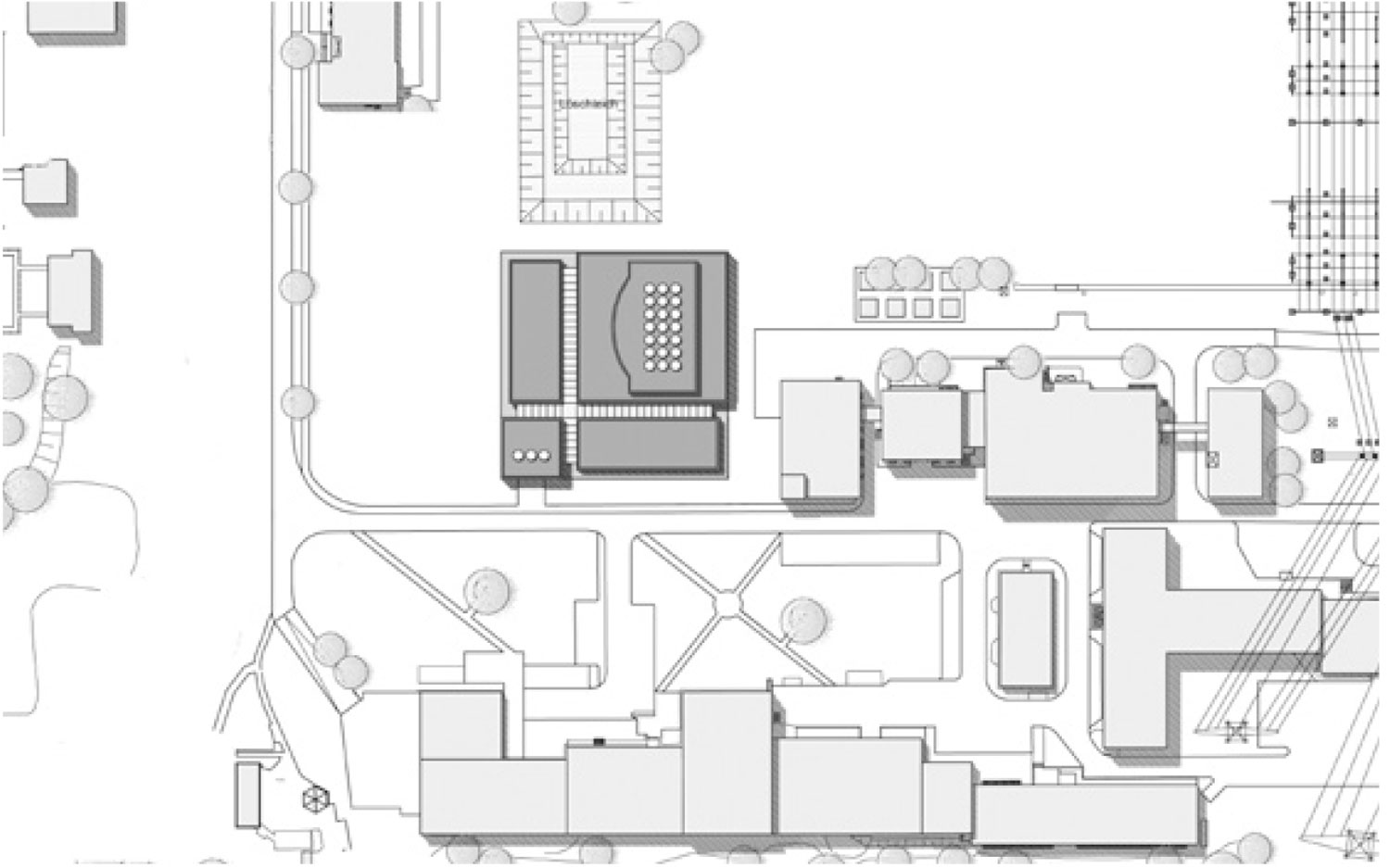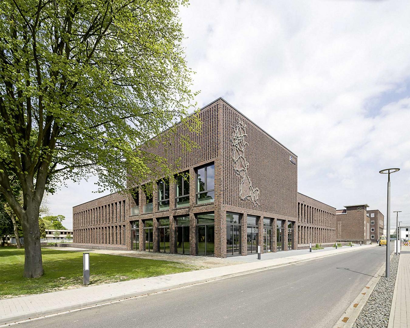 Die Gestaltung des Gebäudes zitiert die Architektursprache historischer Industriegebäude auf eine moderne Art und Weise, ohne aber deren ruhige und zurückhaltende Gestalt zu konterkarieren. Mit seiner Backsteinfassade fügt sich das Gebäude in seiner Materialität harmonisch in das bestehende Umfeld der 1920er-Jahre ein. Gezielte gestalterische Maßnahmen, wie die Reliefierung der Klinkerfassade, heben das Gebäude jedoch zurückhaltend vom benachbarten Bestand ab und machen es mit seiner eleganten Präsenz zum neuen zentralen Punkt des Campus. Auf einer quadratischen Grundfläche sind vier einzelne Gebäudeteile situiert, die durch einen gemeinsamen Klinkersockel zusammengefasst werden. Die einzelnen Gebäudekörper spiegeln die interne Abteilungsstruktur der Unternehmenseinheit wieder und werden durch eine kreuzförmige Erschließungsfuge zusammen gebunden.