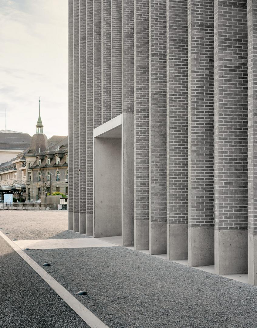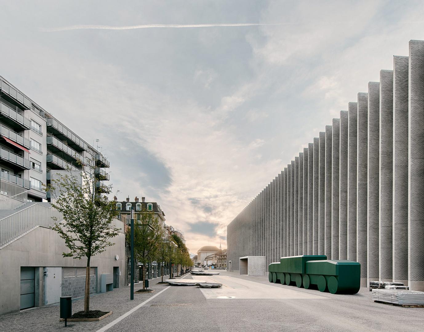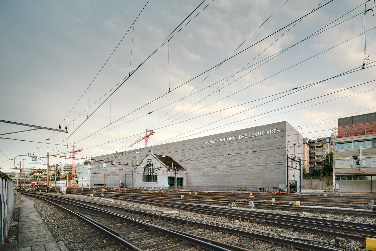 Das Musée cantonal des Beaux-Arts Lausanne befindet sich am Südrand des Platzes als monolithische, parallel zu den Schienen verlaufende Längsbebauung. Es definiert den Stadtraum und schützt ihn gleichzeitig vor der Lärmbelästigung durch die Züge. Das Projekt nimmt diesen Zustand auf und bringt die Vergangenheit dieses Platzes zum Ausdruck, indem es den ehemaligen industriellen Zustand mit pragmatischen Formen und durch die Erhaltung spezifischer Fragmente widerspiegelt.