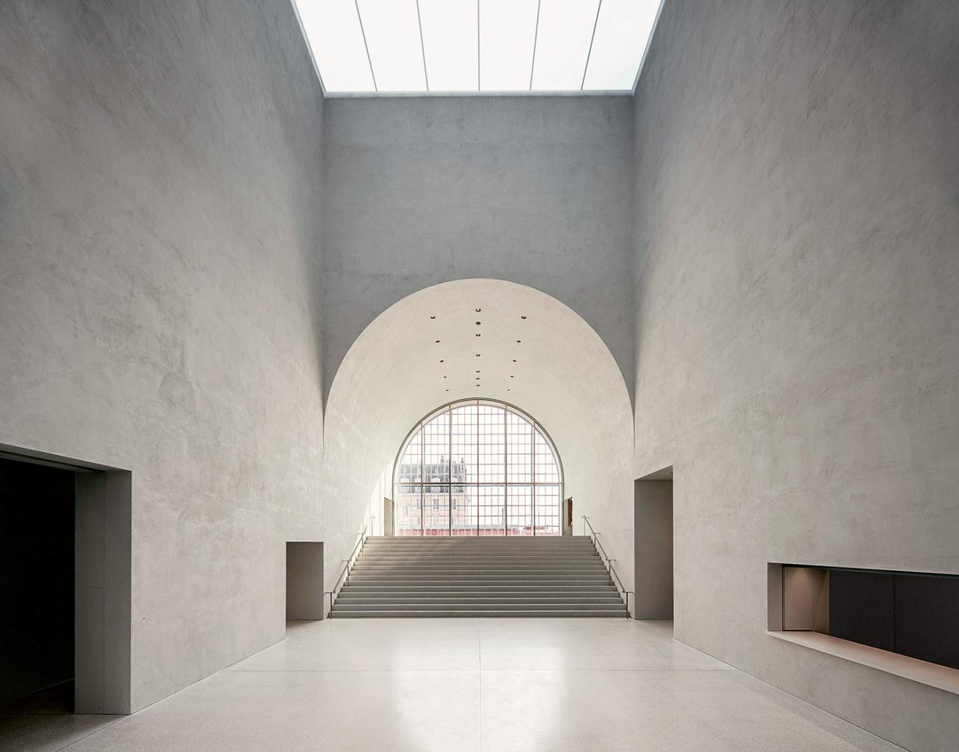 Das Museum ist auf drei Stockwerke verteilt, die durch den durchgehenden Leerraum des Foyers, dar den Besucherverkehr und das Programmangebot strukturiert, miteinander verbunden sind. Das Erdgeschoss entwickelte sich als Erweiterung des öffentlichen Platzes und beherbergt die wichtigsten Angebote wie das Café, die Buchhandlung, das Auditorium usw. Die Fassade auf dieser Ebene ist sehr porös, um die Durchlässigkeit dieser internen Funktionen zum öffentlichen Außenraum des Platzes zu gewährleisten. Auf den oberen Ebenen, auf beiden Seiten des Foyers, befinden sich die Ausstellungsräume. Die permanente Galerie im Osten ist von der temporären Galerie im Westen getrennt. Dank unabhängiger vertikaler Umläufe, die künftig umfassende Ausstellungen ebenso ermöglichen wie kleinere Kapselkollektionen, können die Galerien mit einem einzigen, durchgehenden Rundgang oder in parallelen Rundgängen besichtigt werden.
