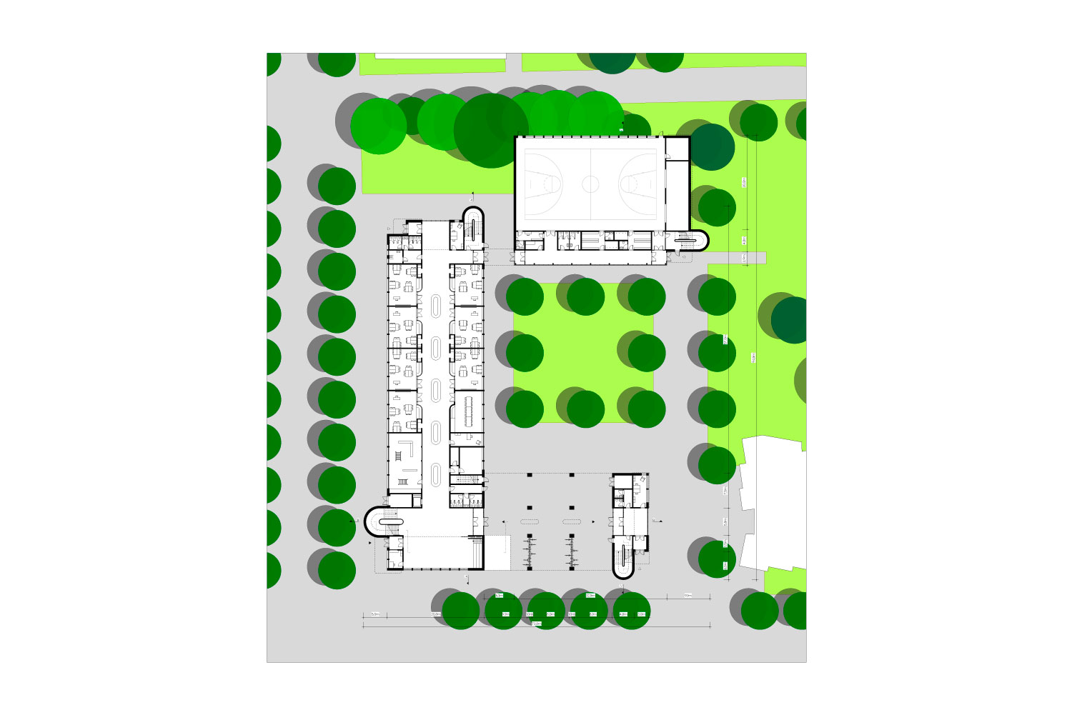 Die Ijdoornschool in Amsterdam benötigt ein neues Schulgebäude. Gefordert sind 17 Klassenzimmer, eine Sporthalle sowie eine Vorschule und eine außerschulische Betreuungseinrichtung. Bei diesem Entwurf handelt sich um eine Bachelorarbeit welche im Zweierteam an der Uni Stuttgart entstanden ist.