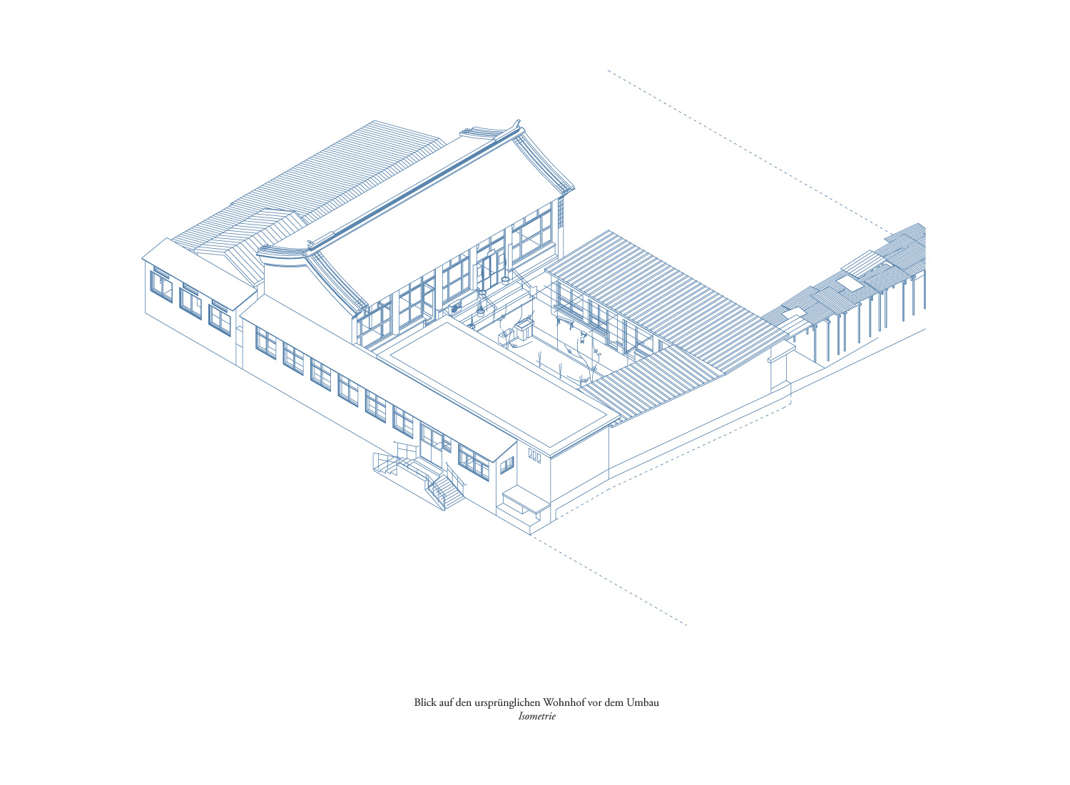 Die Aufgabe, den vorhandenen Wohnhof zu sanieren und zu ergänzen, erforderte eine akribische Untersuchung und Auseinandersetzung mit den Lebensformen im ländlichen Raum Pekings. Eine ausführliche Analyse der Bautypologie, der gebauten Umgebung, des sozialen und historischen Kontexts und schließlich der Anforderungen für die neue Nutzung waren vor dem Entwurfsprozess unabdingbar. In einer Vorstudie wurden der Standort und seine früheren Gebäude dokumentiert und grafisch rekonstruiert. Eine Bauchronik, die in den 1950er Jahren beginnt, zeigt die verschiedenen Zustände und Veränderungen, die der Ort und die Gebäude erfuhren.
