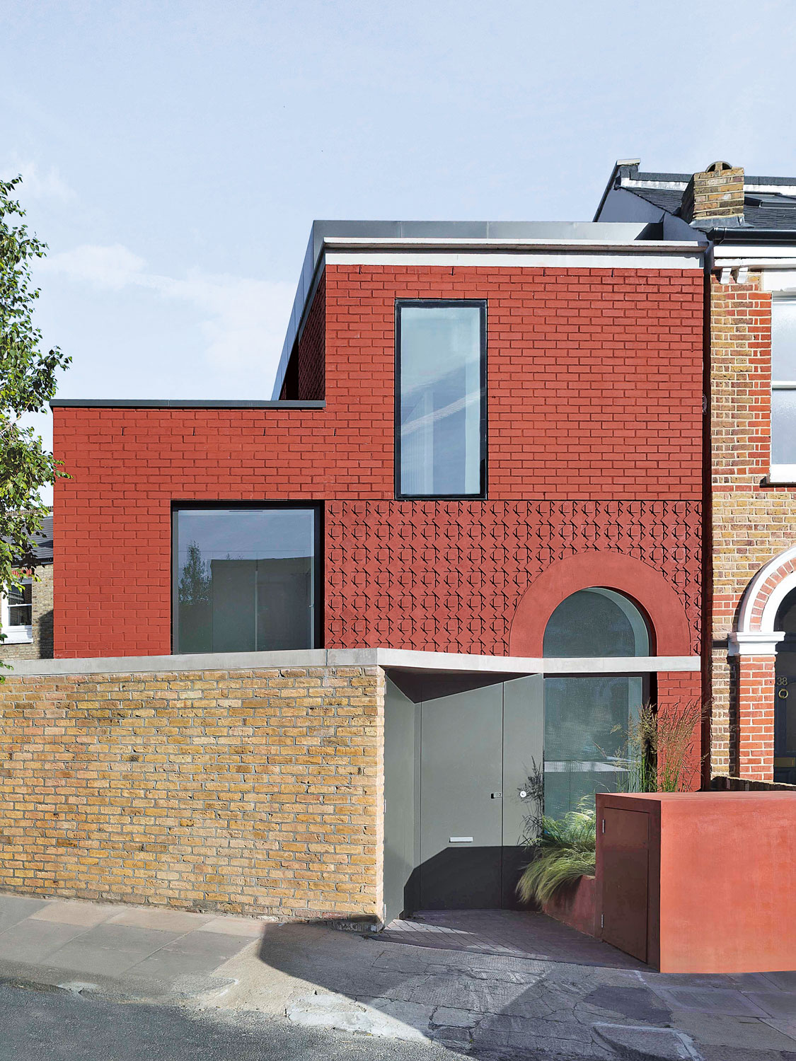 Am Ende eines Straßenzugs aus dem viktorianischen Zeitalter im Londoner Bezirk East Dulwich entfaltet sich das dreistöckige Wohnhaus Red House selbstbewusst über zwei Ebenen. Der namensgebende rote Backstein bildet eine markante Fassade, gepaart mit einer hochreliefierten tragenden Betonplatte, die passend pigmentiert ist. Im Inneren sorgen sorgfältig kuratierte Räume und Ausblicke dafür, dass Licht und Grün alle Ebenen durchdringen.