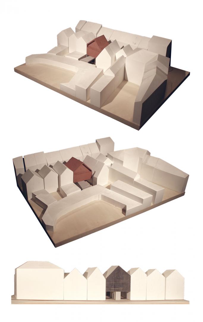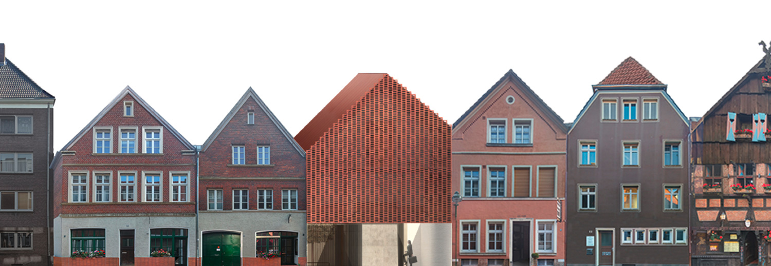 Entstanden als Kursaufgabe beschäftigt sich der Entwurf mit einem Baugrundstück im Kuhviertel, welches sich an den nordwestlichen Rand des Innenstadtzentrums erstreckt. Die angrenzende Buddenstraße läuft frontal auf den Buddenturm zu, der prägnantesten Landmarke des Viertels, welches sich aus Wohnungsbauten der Gründerzeit und Zweckbauten der 50er-Jahre mit vereinzeltem gewerblichen Betrieb in der Sockelgeschosszone zusammensetzt. Eine weitere Haustypologie findet sich auf dem Grundstück, auf dem es zu planen gilt: das Gadem, ein historischer Bautypus, vereint Handelsräumlichkeiten mit klassischer Wohnnutzung.