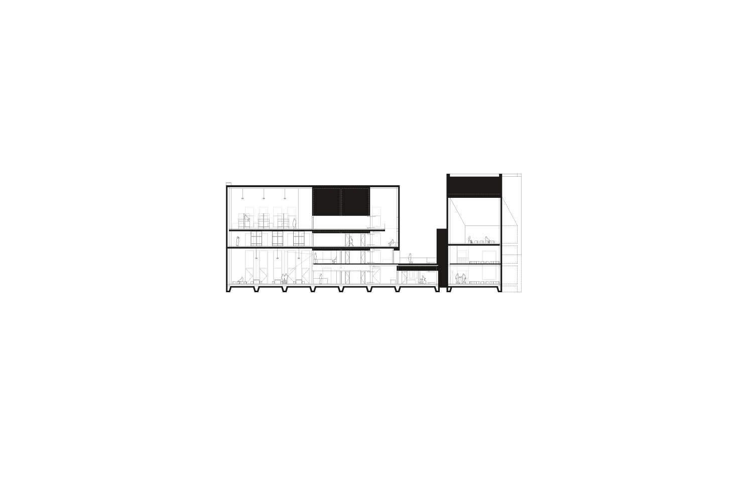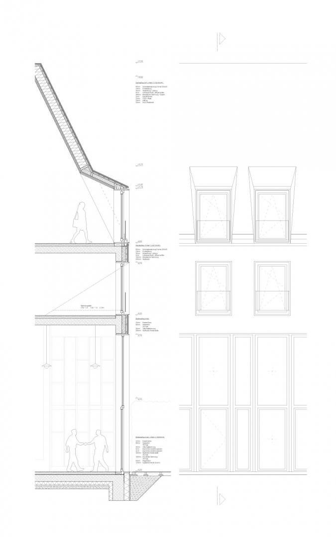 Der Baukörper ist von der für die Region typischen Bauweise eines Langhauses inspiriert, das durch sein steiles Satteldach, den Fensterlaibungen und stehenden Fensterformaten charakterisiert wird. Die Dach- und Fassadenflächen werden einheitlich in einer Holzschindelverkleidung ausgeführt. Diese sparsame Verwendung von Materialen setzt sich auch im Innenbereich des Gebäudes fort.