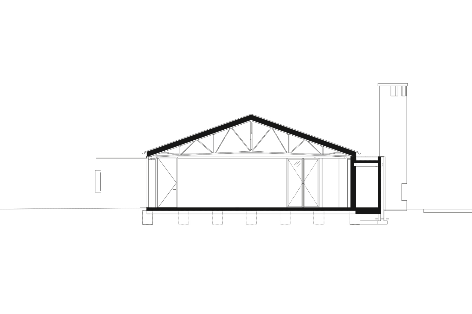 To achieve the required program, additions were added that are constructed in glued masonry in a stacked bond, creating a new temporal plane. In reference to the 1980s chimney that literally stands on Main Street, the additions are sculpturally conceived. The shed is no longer seen as a closed box. Rather, interaction with the surroundings and Main Street is sought. This interaction is enhanced by the creation of openings in the south façade and chimney.