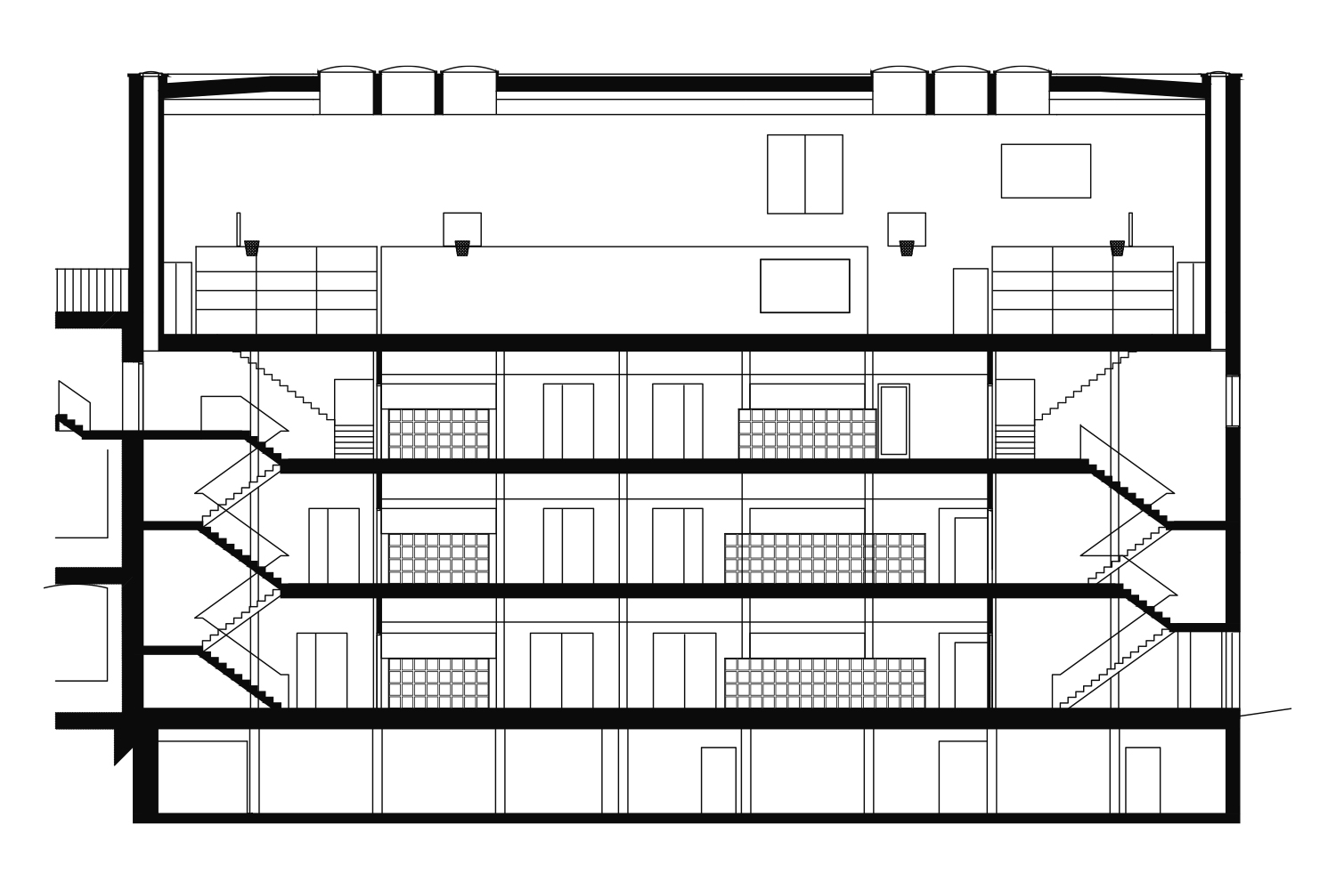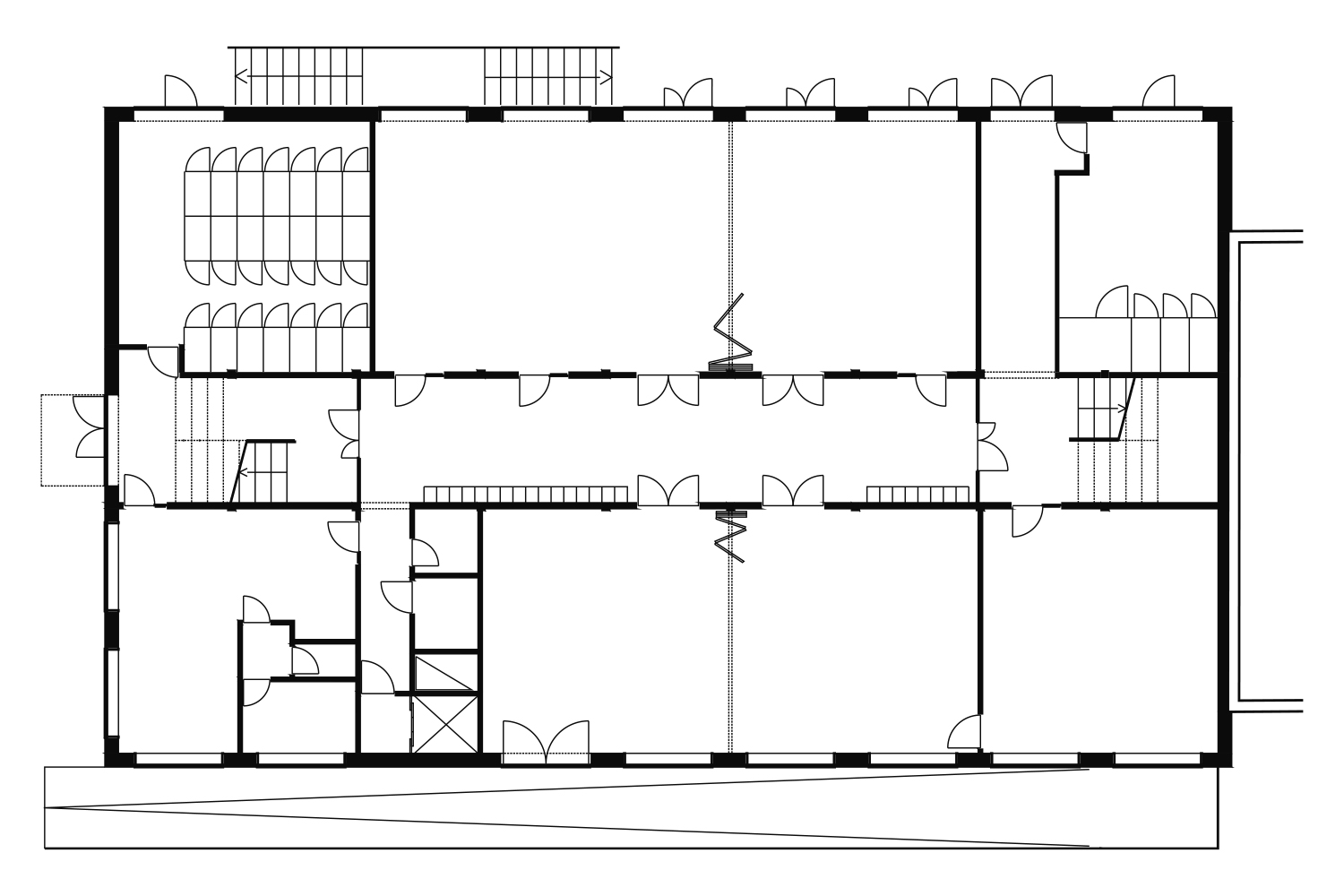Das Ursulinengelände im Zentrum der belgischen Stadt Mechelen zeichnet sich durch einen undefinierbaren Mix von Gebäudetypen und -stilen aus. Dem dichten, labyrinthischen Geflecht aus öffentlichen Gebäuden und Privatwohnungen wurden zwei weitere Bauten hinzugefügt: Der erste, langgestreckte Baukörper, der an der Straße beginnt und tief in das Gelände hineinreicht, enthält Klassenräume für Kindergarten und Grundschule. Eine halbversenkte Turnhalle und ein überdachter Spielplatz beleben Erdgeschoss und Außenraum. Der zweite Baukörper, ein quadratischer und kompakter monolithischer Block, liegt ein Stück von der Straße entfernt, sodass ein großer Vorplatz entsteht. Darin befinden sich eine Sekundarschule und eine große Sporthalle.
