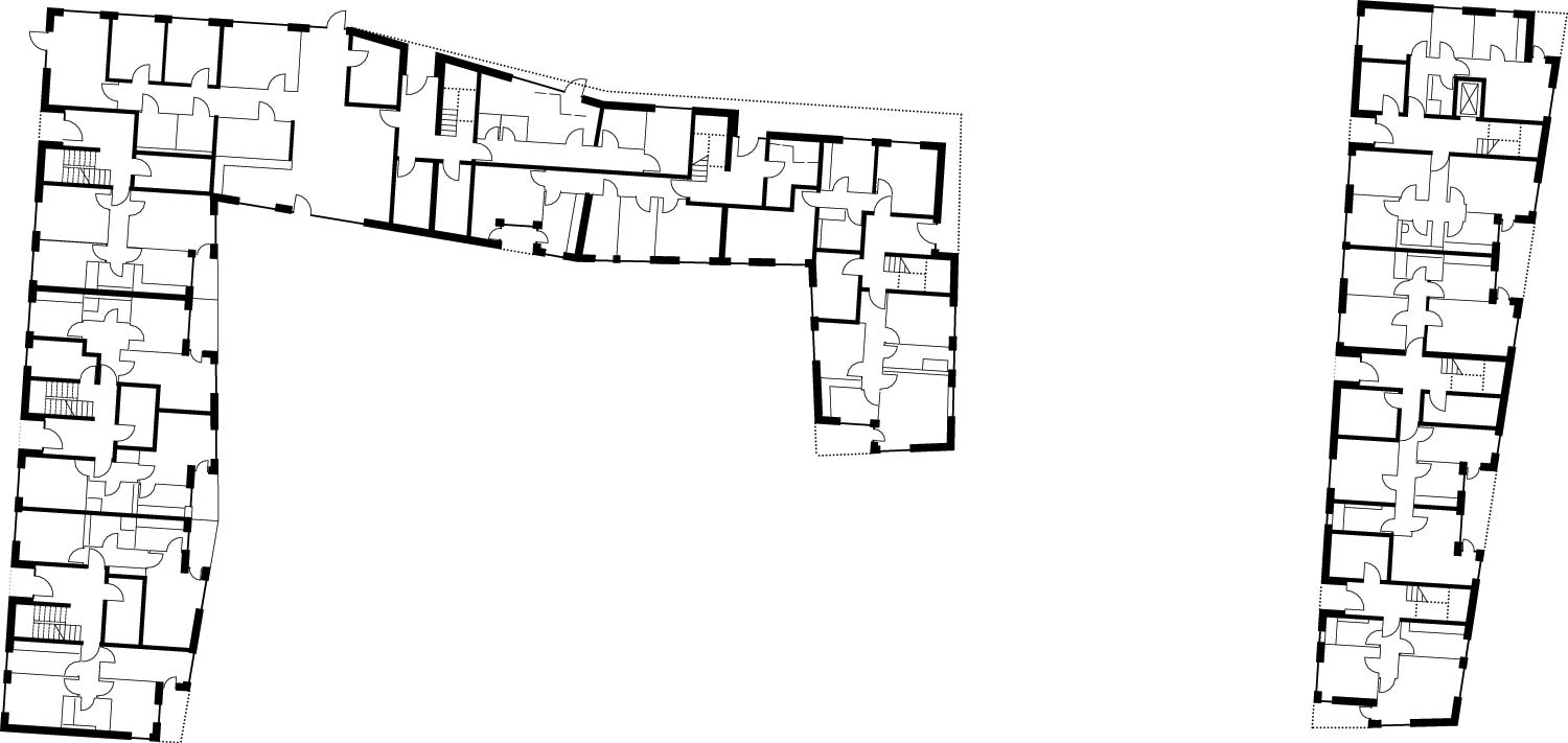 Im Rahmen der Internationalen Bauausstellung [IBA] 2013 entstand im Hamburger Stadtteil Wilhelmsburg das „Weltquartier“ – ein Modellprojekt für interkulturelles und zukunftsfähiges Wohnen für mehr als 1.700 Bewohner aus unterschiedlichen Ländern. Die ehemalige Arbeitersiedlung aus traditionellen roten Backsteinbauten in Zeilenbauweise wurde durch zwei Neubauten – bestehend aus dem westlich gelegenen U-Haus und dem östlich gelegenen T-Haus – ergänzt, die die Siedlung in ihrer städtebaulichen Struktur schließen. Von der Qualität und den baulichen Grundelementen des Bestandes inspiriert, interpretieren die beiden Kopf bauten diese in einer eigenständigen Architektursprache mit skulpturalen Formen neu, verknüpft mit den Anforderungen an ein energetisch hocheffizientes Passivhaus.