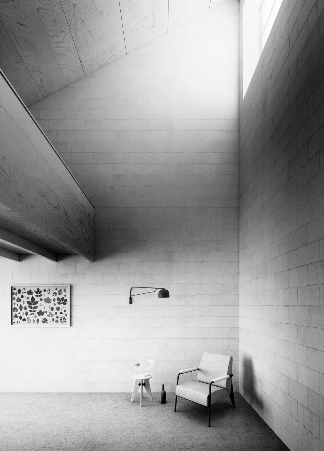 Ein Ort des Innehaltens und auf sich bezogen seins. Kleinstwohnmodule reihen sich hierfür aneinander und werden ergänzt durch einen großzügigen Apparat von gemeinschaftlich genutzten Bereichen, wie Kaffeebar, Waschsalon, Fitnessraum, die sich in verschiedenen Bereichen des Verwaltungsgebäudes, sowie im Solitär wiederfinden. Zentrales Anliegen war es die materielle Formensprache der gegeben Baustruktur nicht anzuzweifeln und dem einen Kontrapunkt zu setzen, sondern vielmehr eine einfühlsame materiellen Ergänzung des Bestehenden vorzunehmen. Dabei lassen sich die neuen Eingriffe auf der Betrachtungsebene klar einordnen. Es entsteht ein Spiel aus differenzierter Fern- und Nahwirkung. Aus der Ferne wirken alle Bausteine als Ensemble, bei genaueren Hinsehen lässt sich Differenz von Alt- und Neubau ausmachen - die suggestive Kraft, die auf den Betrachter wirkt, ihn in Bewegung setzt und seine Wahrnehmung aktiviert. Hierfür lag es Nahe ausschließlich Materialien wie gebrannter Stein und rohes Holz zu verwenden.