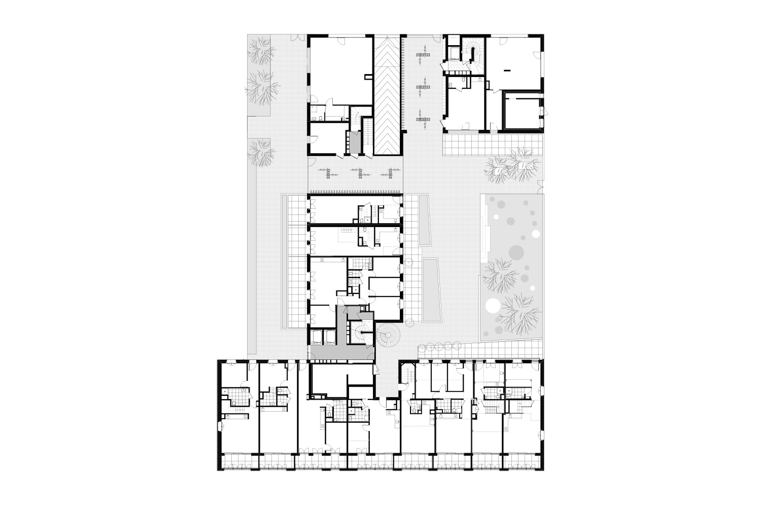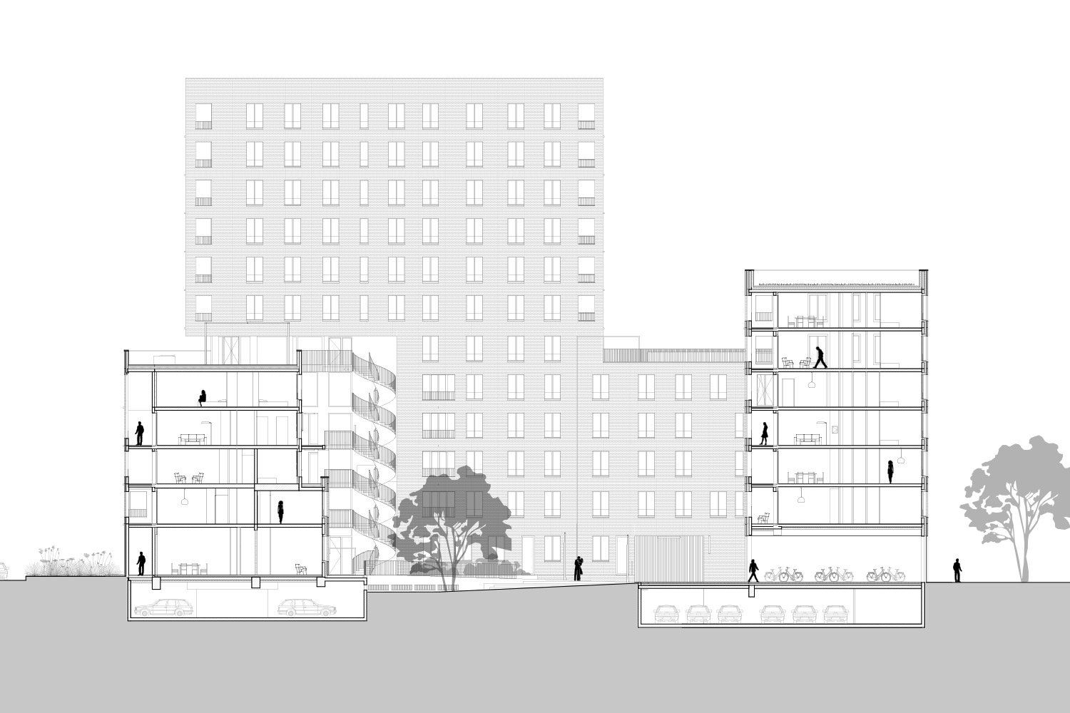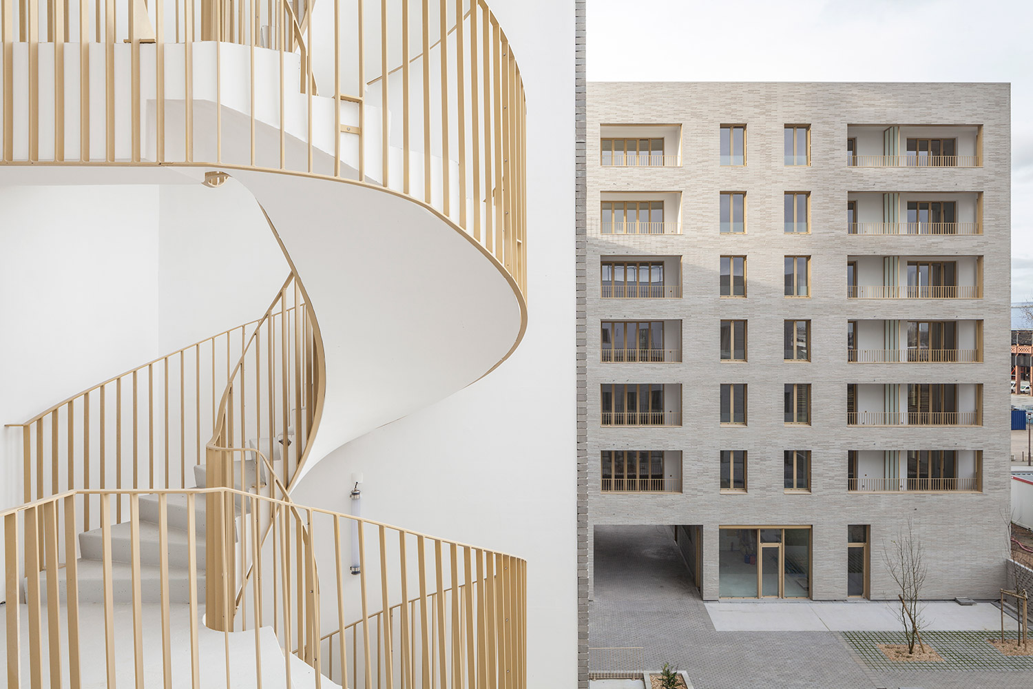 Das Projekt zeichnet sich dadurch aus, dass es drei sehr unterschiedliche Typen von Wohnungsbauten kombiniert: Sozial-, Genossenschafts- und Eigentumswohnungen. Tectône und tact studios haben dabei den Fokus auf Begegnungs- und Gemeinschaftsräume gelegt: Einige dieser Räume sind speziell für die drei Typen konzipiert, andere erstrecken sich über alle Wohnungen und sogar teilweise über das gesamte Viertel und die Stadt. Entstanden sind eine Gemeinschaftswerkstatt, drei gemeinsame Wohnräume, zwei gemeinsame Terrassen, ein gemeinsamer Garten, ein Waschraum und sogar eine Gemeinschaftswohnung. Einer der interessantesten Teile dieses Gebäudekonzepts sind die 15 Cohousing-Wohnungen. Die künftigen Bewohner wurden von Anfang an in die Gestaltung ihrer Wohnung einbezogen – noch bevor der Architekt feststand! Dadurch sind diese Wohnungen besonders gut an die Bedürfnisse der Bewohner angepasst.