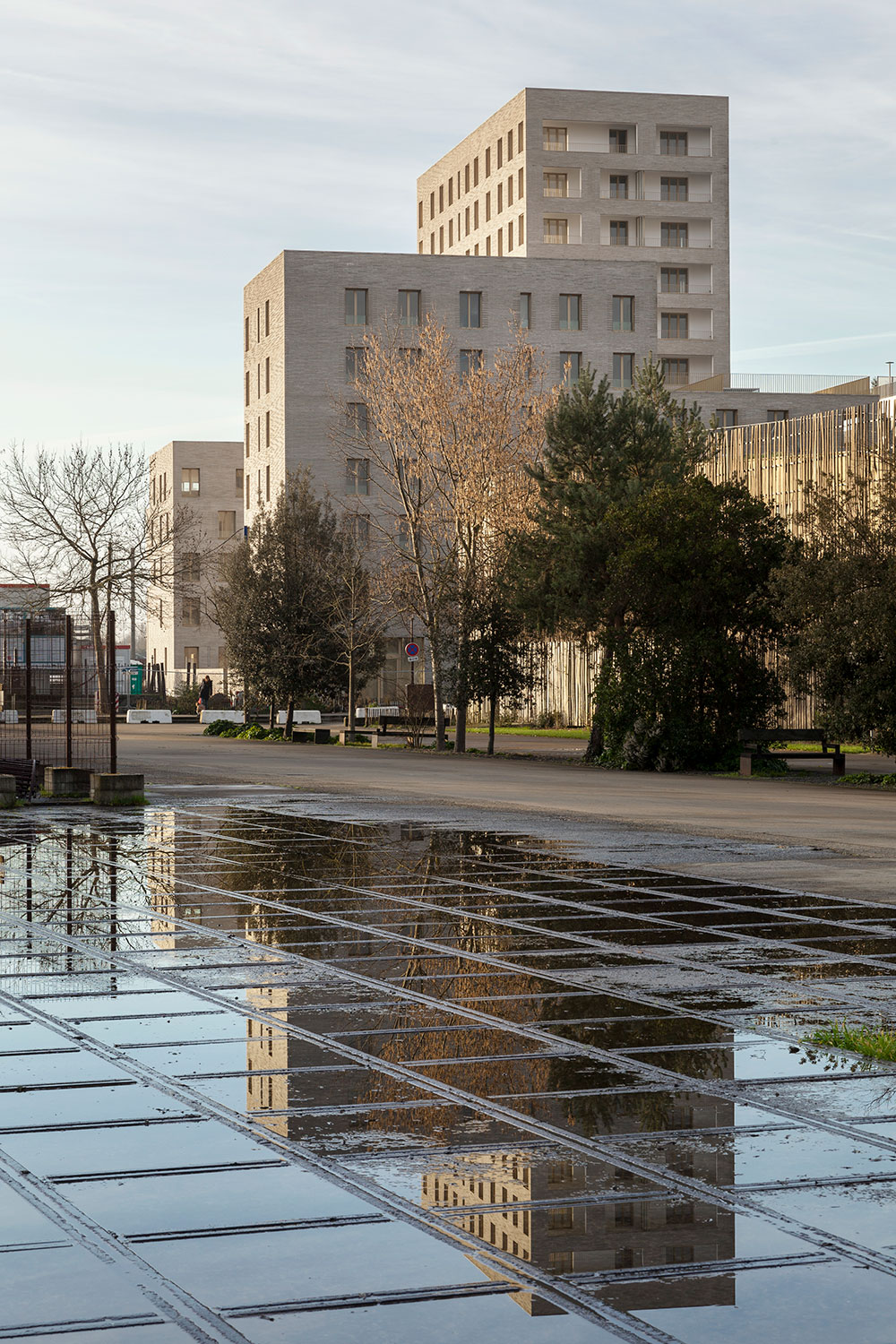Die Île de Nantes liegt in der Stadt Nantes im Westen Frankreichs und war jahrzehntelang das Industriezentrum der Region, bis sie in den 90er Jahren nach und nach aufgegeben wurde. Der Wohnkomplex ist Teil der umfassenden Umstrukturierung dieses verwaisten Stadtteils, die in den 2000er-Jahren begann.