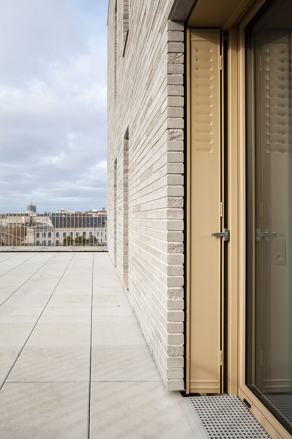 Die Wahl der Architekten bei der Fassadengestaltung fiel auf Backstein, der eine inzwischen schon 30 Jahre währende Tradition bei tectône hat, aber vor allem auch das große Bauvolumen erlaubt: Nantes liegt in einer seismischen Zone, was gemäß europäischen und französischen Gesetzen besondere Anforderungen mit sich bringt. Für dieses Gebäude wurde eine neuartige, erdbebensichere Backstein-Technologie – samt Patentanmeldung – entwickelt.