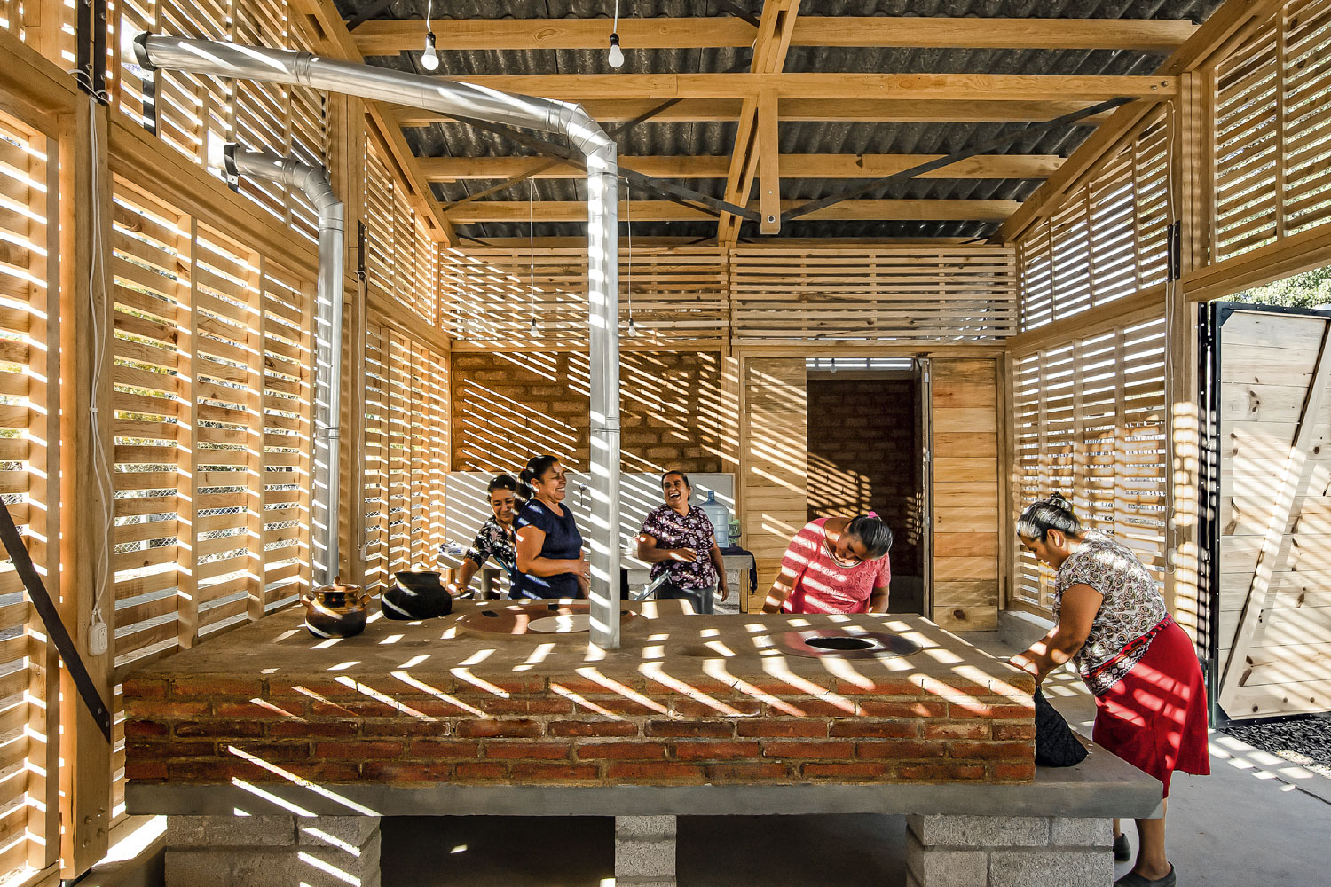 Das neue Zentrum für Kultur und Ökologie in Santa Catarina Quiané bietet der Gemeinde Raum, ihre kulturellen Aktivitäten auszuüben und Gemeinschaft zu leben, aber auch agrarökologische und nachhaltige Techniken zu lernen. Zu dem Gesamtkonzept gehören eine umschlossene Aula, eine überdachte Halle, ein Sanitärgebäude mit Kleinkläranlage, eine Gemeinschaftsküche sowie eine offene, L-förmige Galerie, die den zentralen Veranstaltungsplatz einrahmt und an der sich die verschiedenen Gebäude wie Perlen an einer Kette auffädeln.