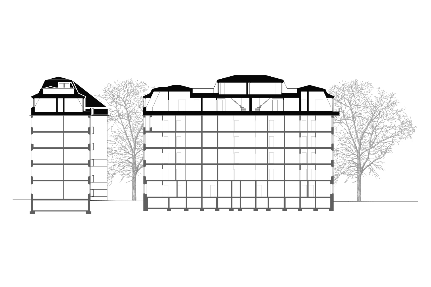 Zweigeschossige Dachaufstockung eines denkmalgeschützten Ensembles